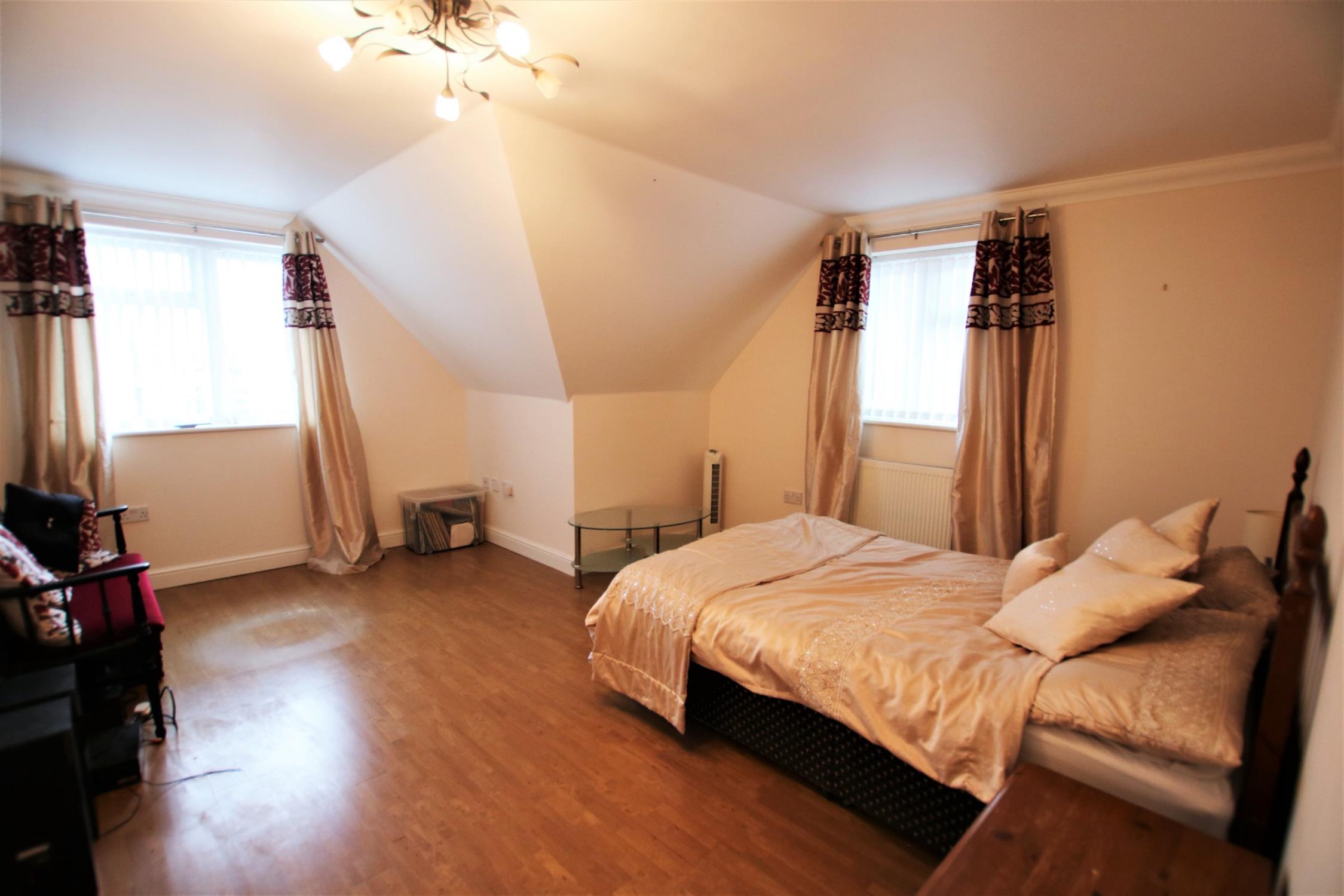 Double-glazed window to the rear aspect, large mirror fronted wardrobes with shelf and hanging space, radiator.