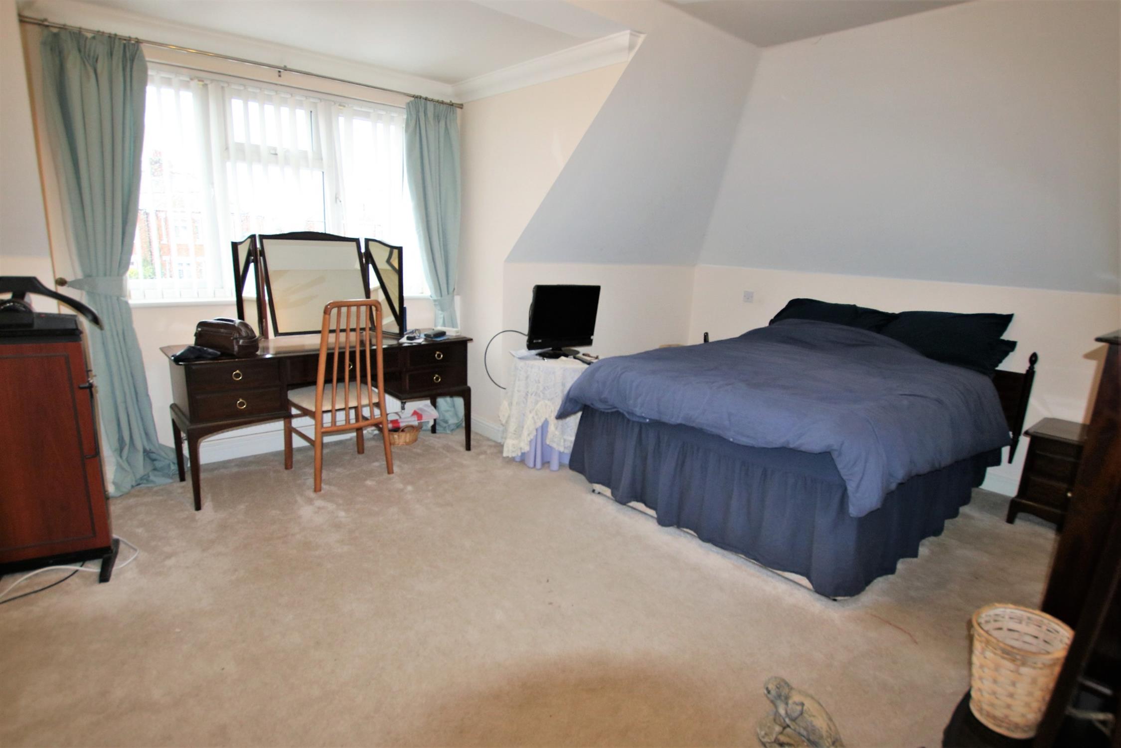 Double-glazed window to the front aspect, range of fitted wardrobes with shelf and hanging space, radiator, built in storage cupboard, TV aerial point, door to: