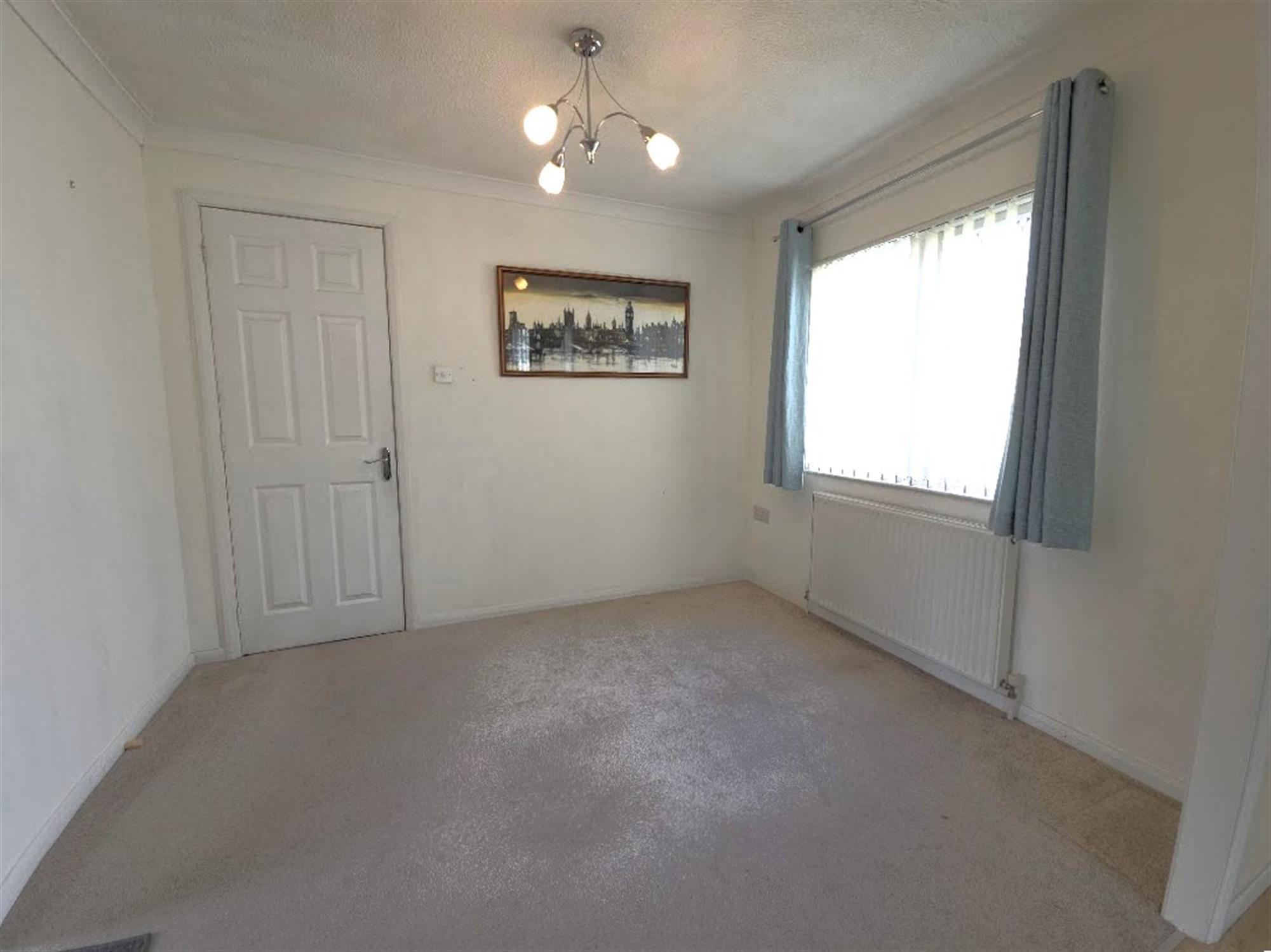 Double-glazed window to the front aspect, radiator, carpeted flooring, open aspect to the living room.