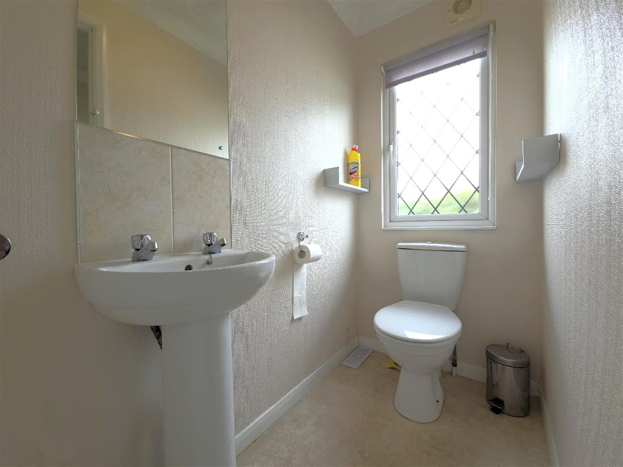 Low level WC, pedestal wash basin, double-glazed window to the front aspect, radiator.