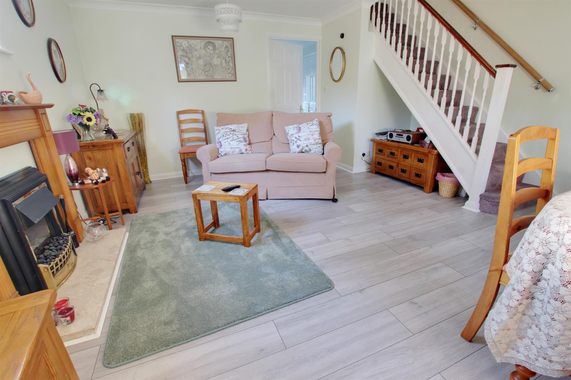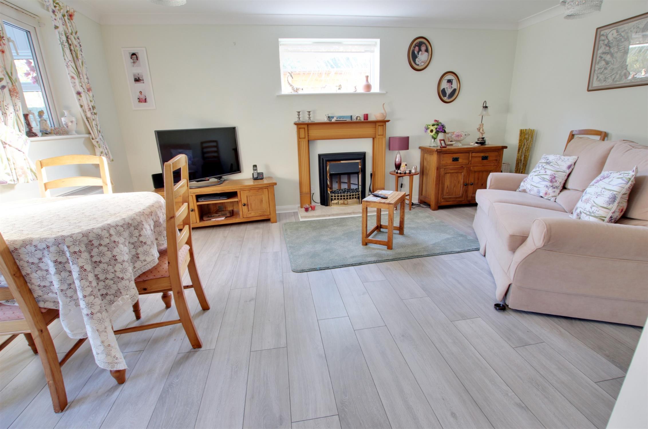 RECEPTION HALLApproached via UPVC front door. Double opening storage cupboard. Wood effect laminate flooring. Wall mounted night storage heater.