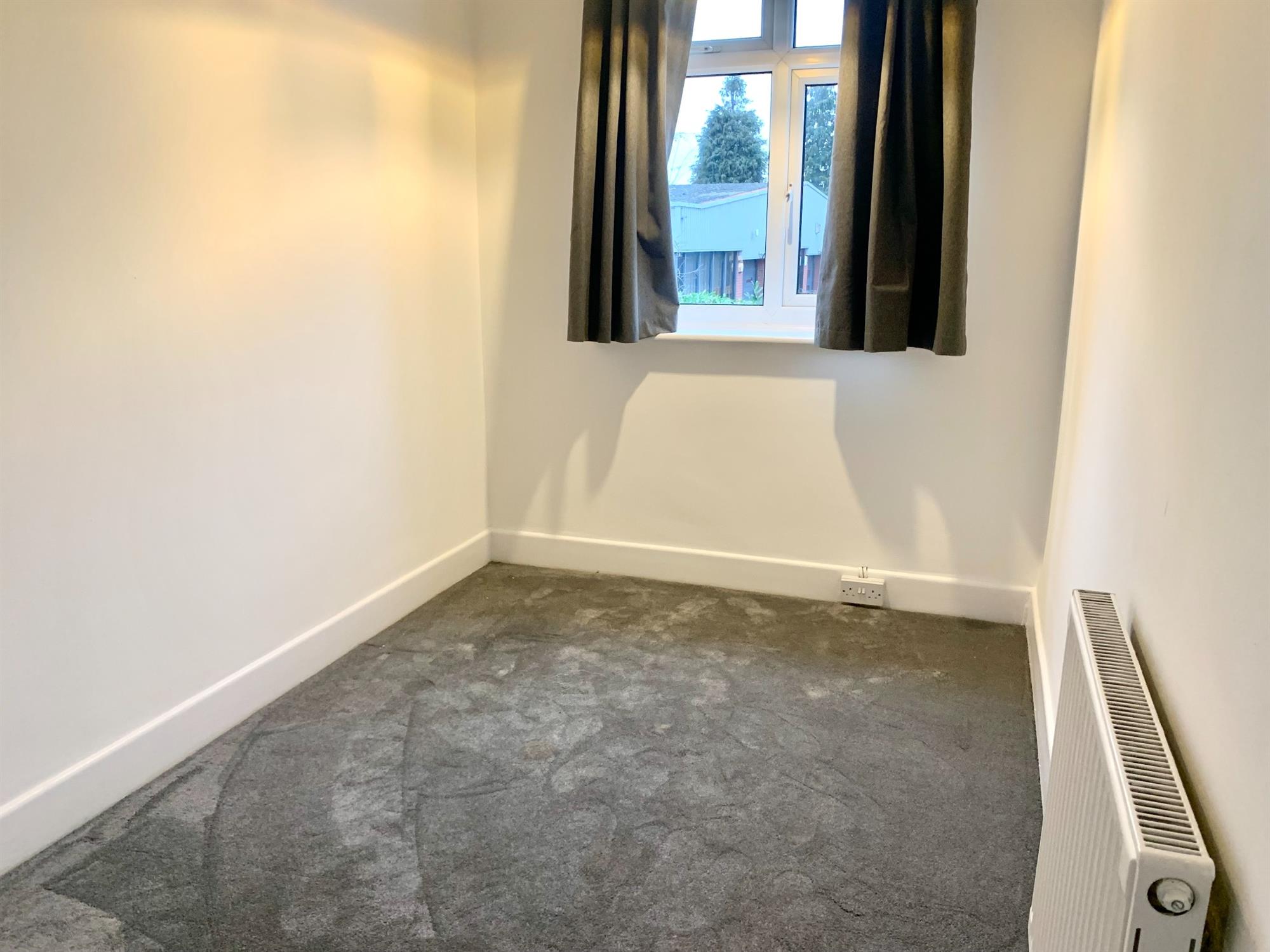 BEDROOM 3 – Large single bedroom with window over garden and newly fitted grey carpet.