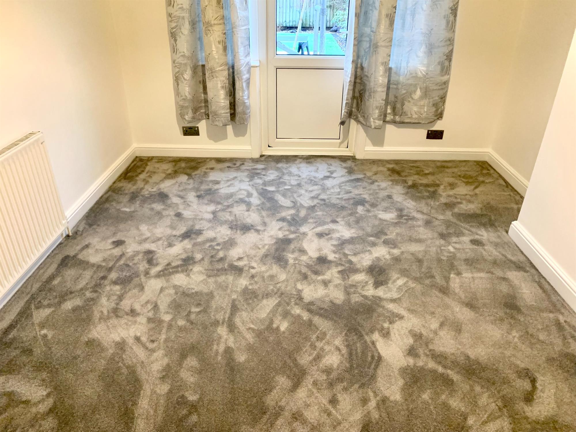 DINING ROOM – Door and windows to rear garden and newly fitted grey carpet.