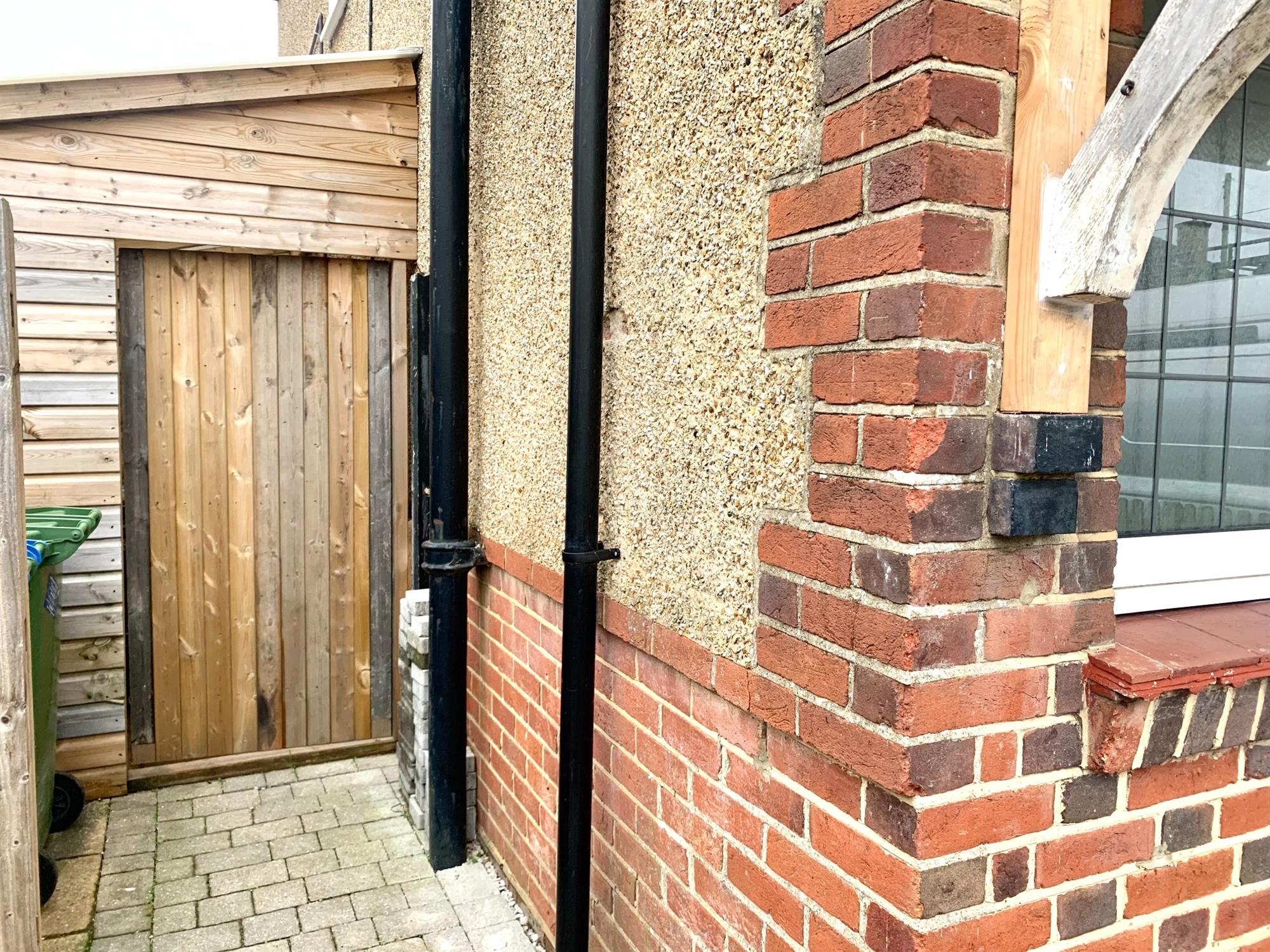 STORAGE CUPBOARD – Located to the left side of the property and has door at the front and door into garden.