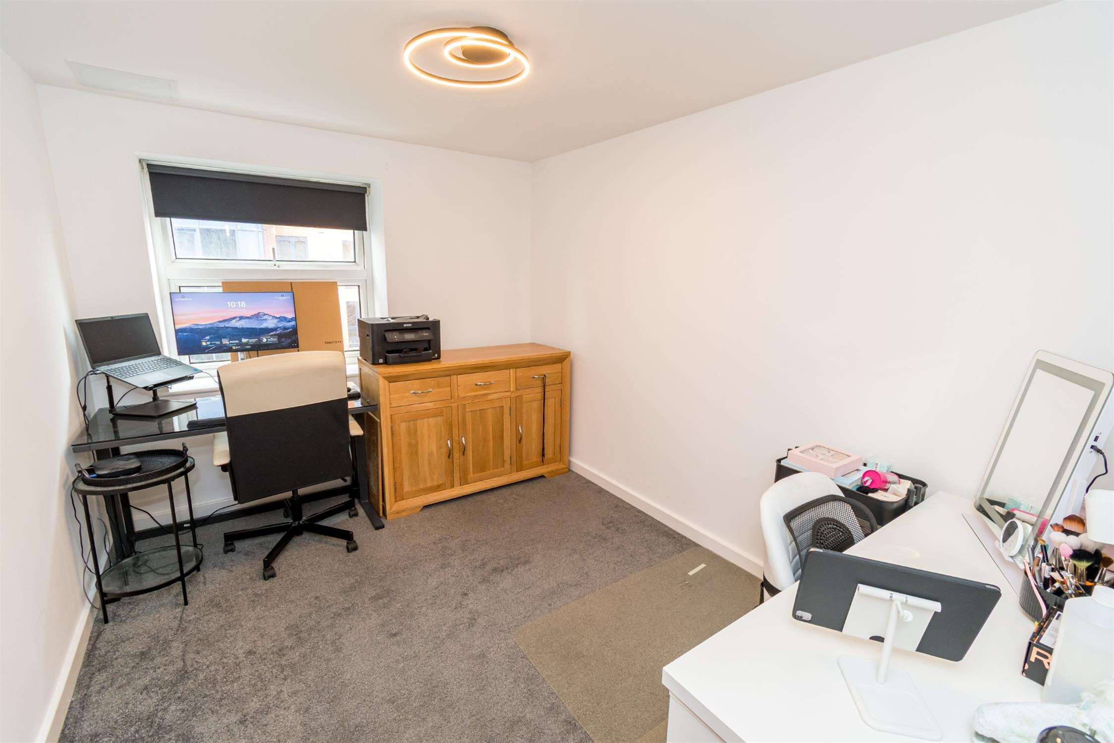 Smooth ceiling, UPVC double glazed window to side elevation, radiator, carpeted.