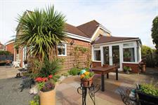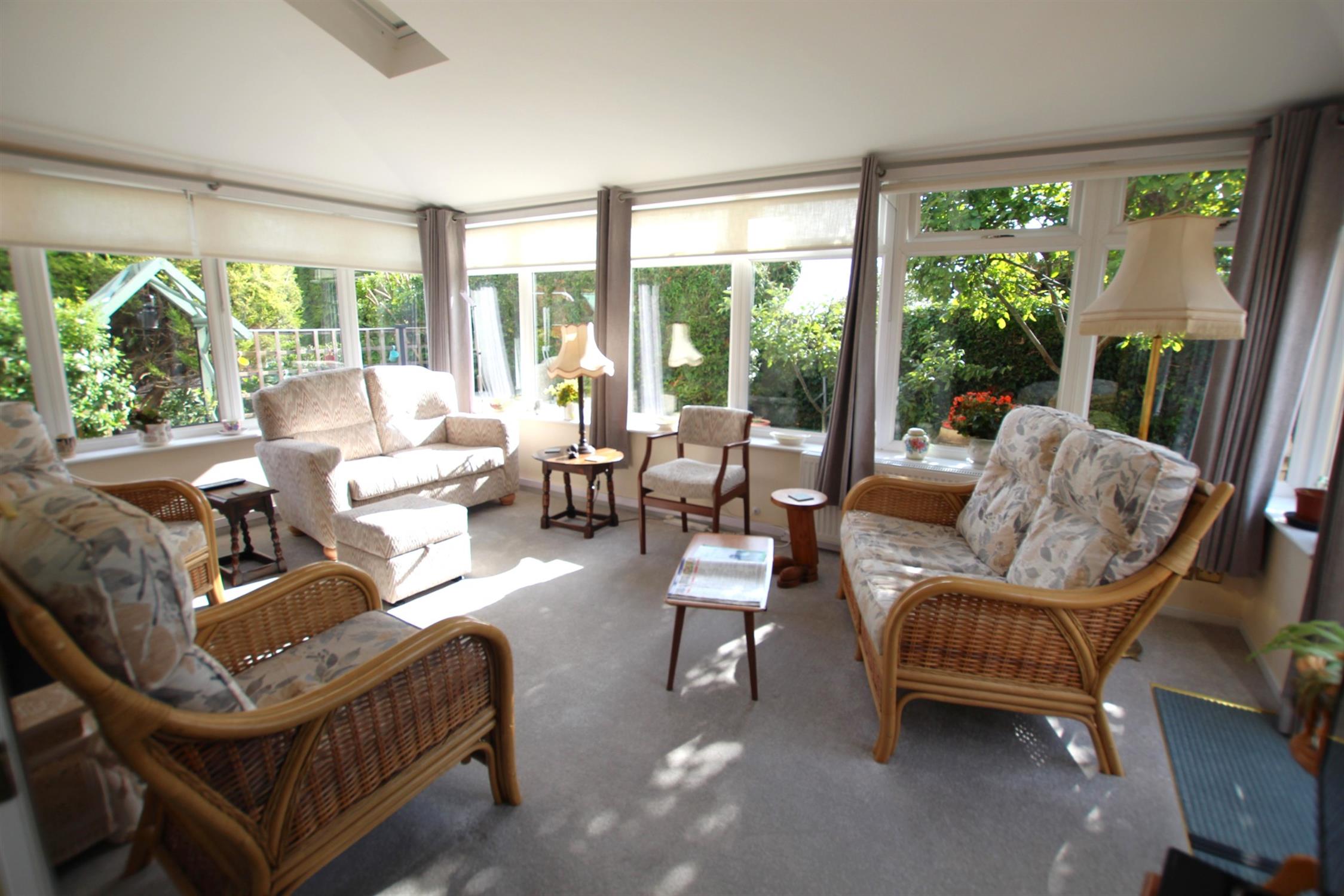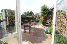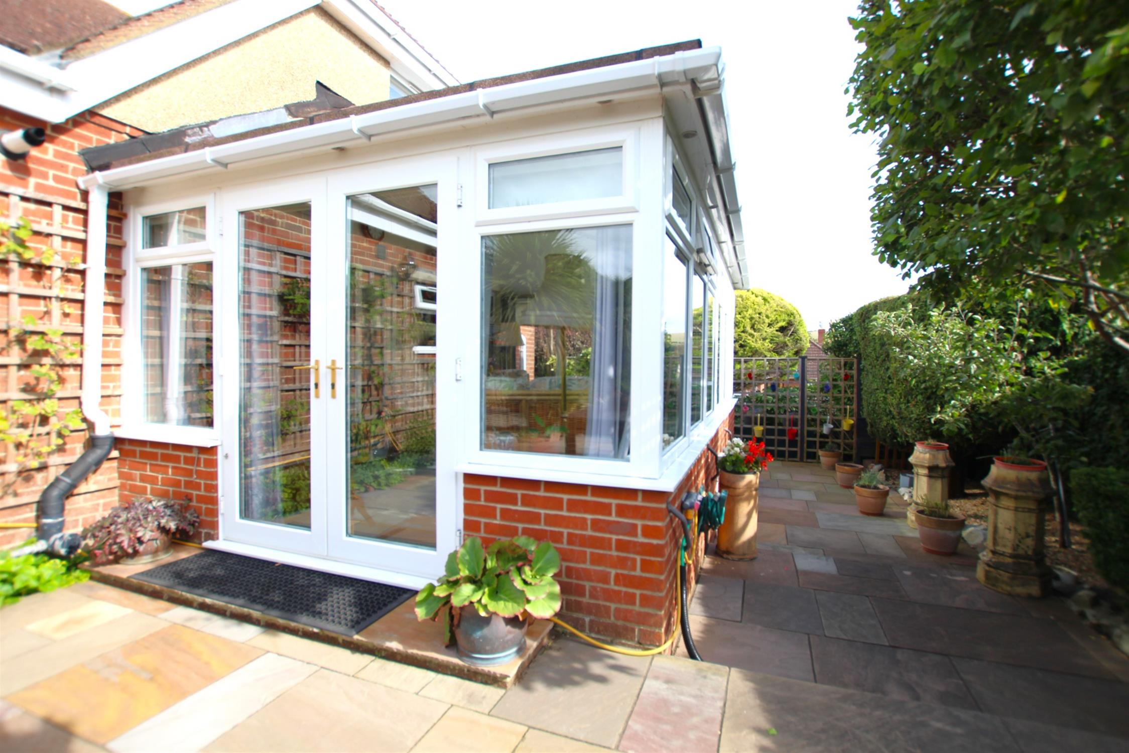 LOUNGE Double glazed triple aspects to gardens including access via French doors to south-facing terrace, 2 x radiators, power points, TV point, fitted thermal insulated blinds and curtains to remain, skimmed ceiling, new solid roof and carpet.
