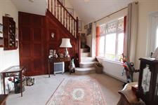 RECEPTION HALLWAY Impressive galleried landing with open vaulted ceiling and return staircase with under stairs storage, Twin aspect double-glazed windows to front elevation, 2 x radiators, power points, new carpets, fitted blinds to windows to remain, door to lounge and door to