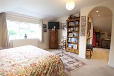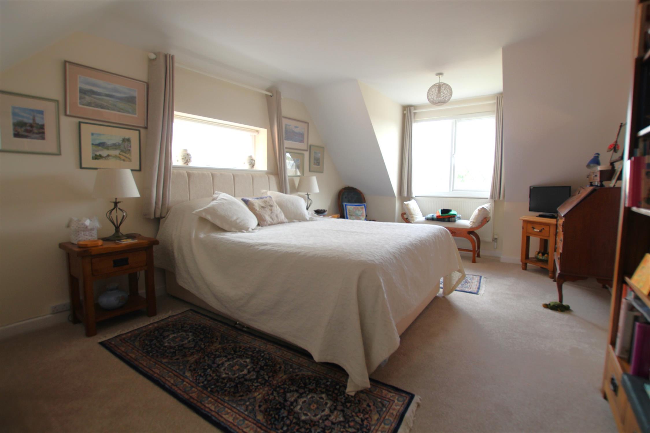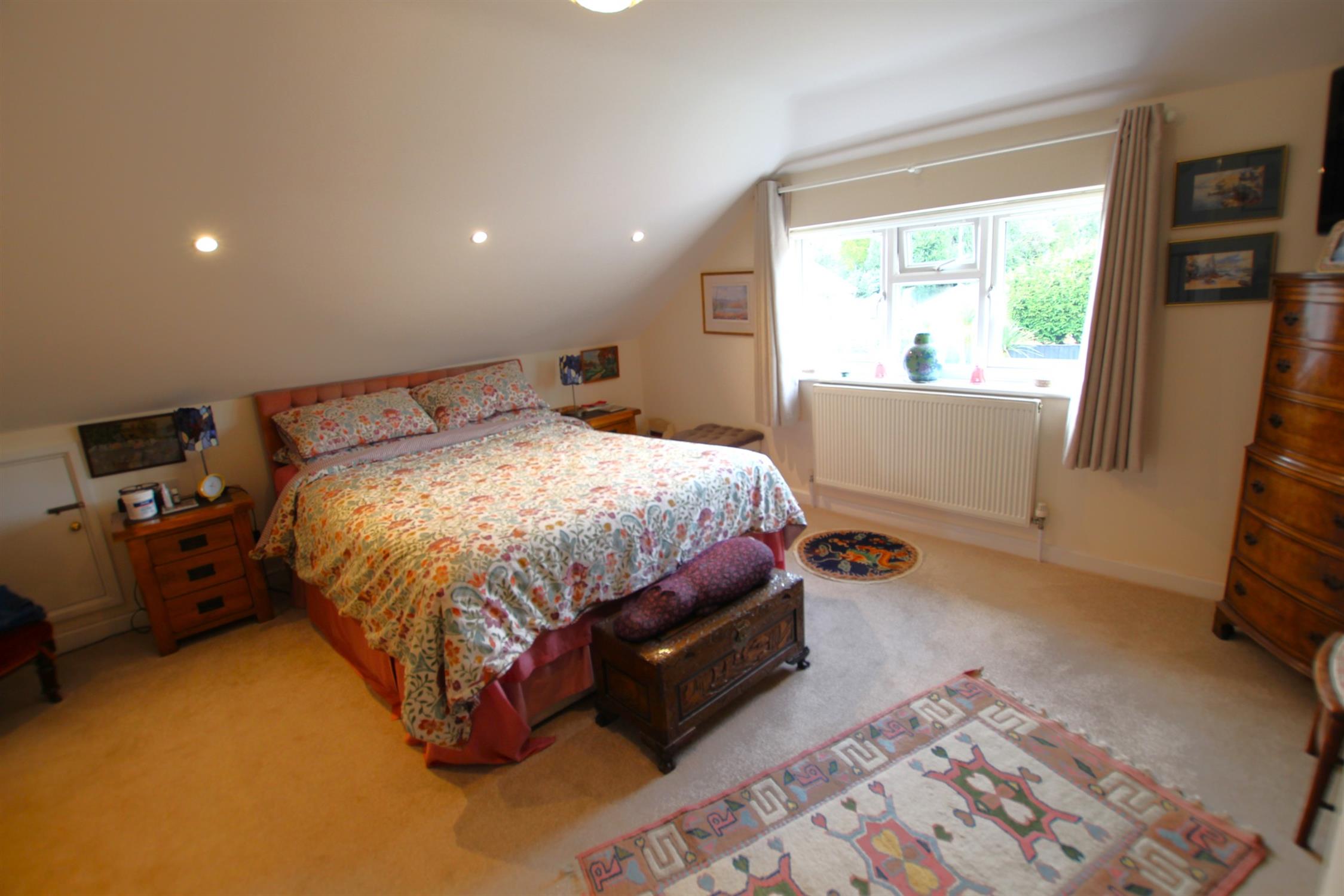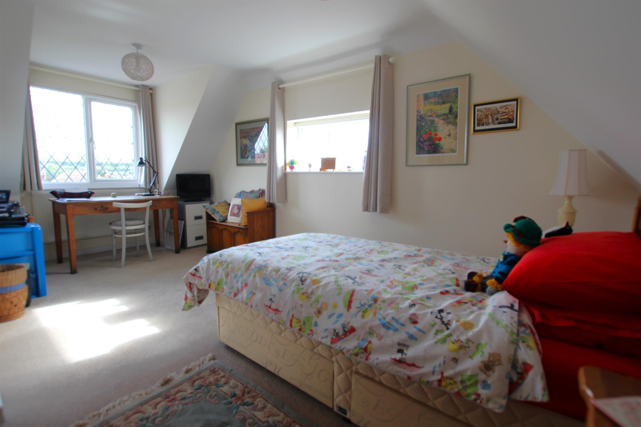 BEDROOM 3 Dual aspects double-glazed windows to front and side elevations with views towards Windmill Hill, radiator, power points, 2 x TV points, telephone point, fitted thermal insulated blinds and curtains to remain, new carpet, door to eaves storage.