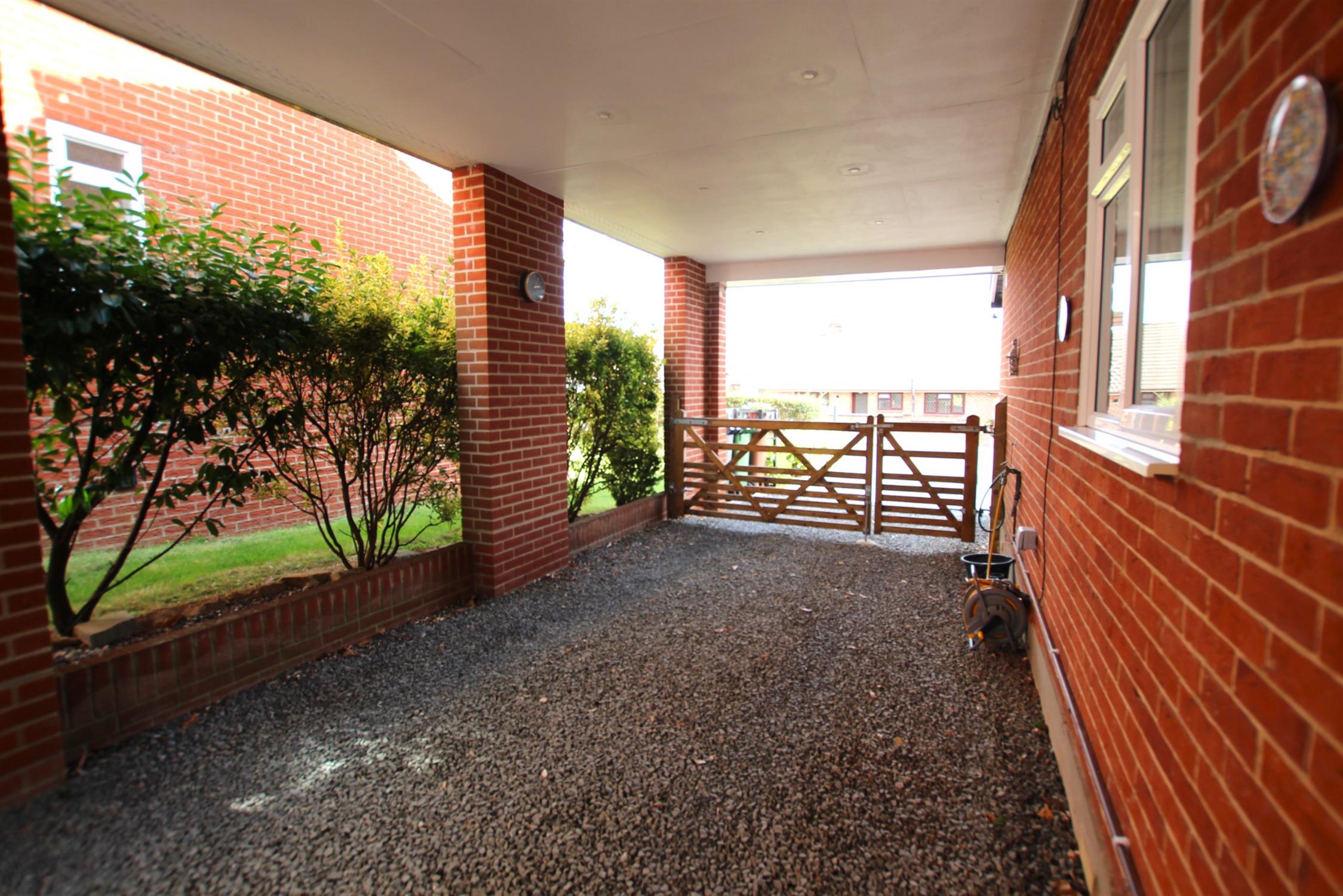 FRONT GARDEN Driveway parking for numerous vehicles and laid in limestone gravel with established borders, access to Undercforft/Carport and gated access to the garden to the side.