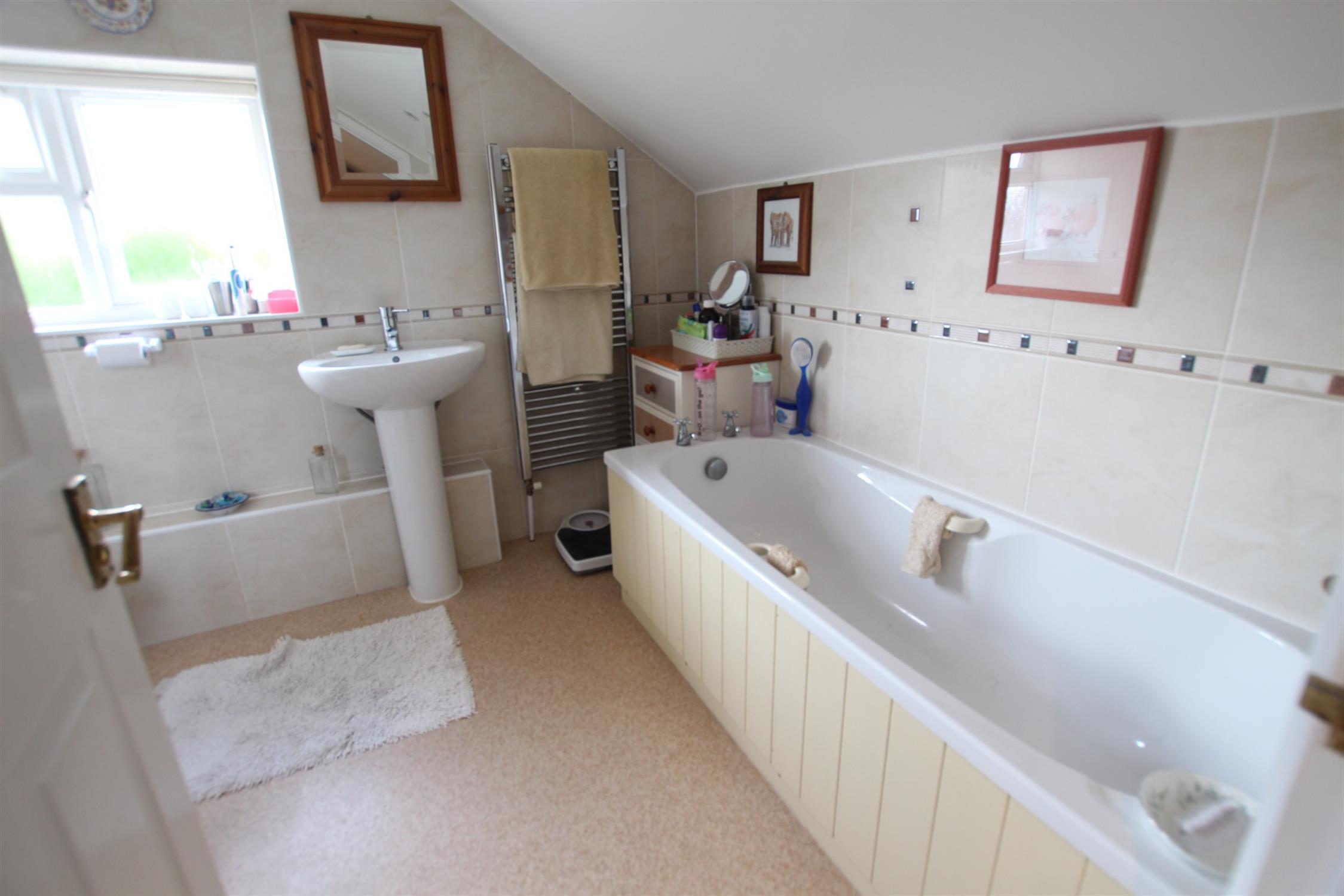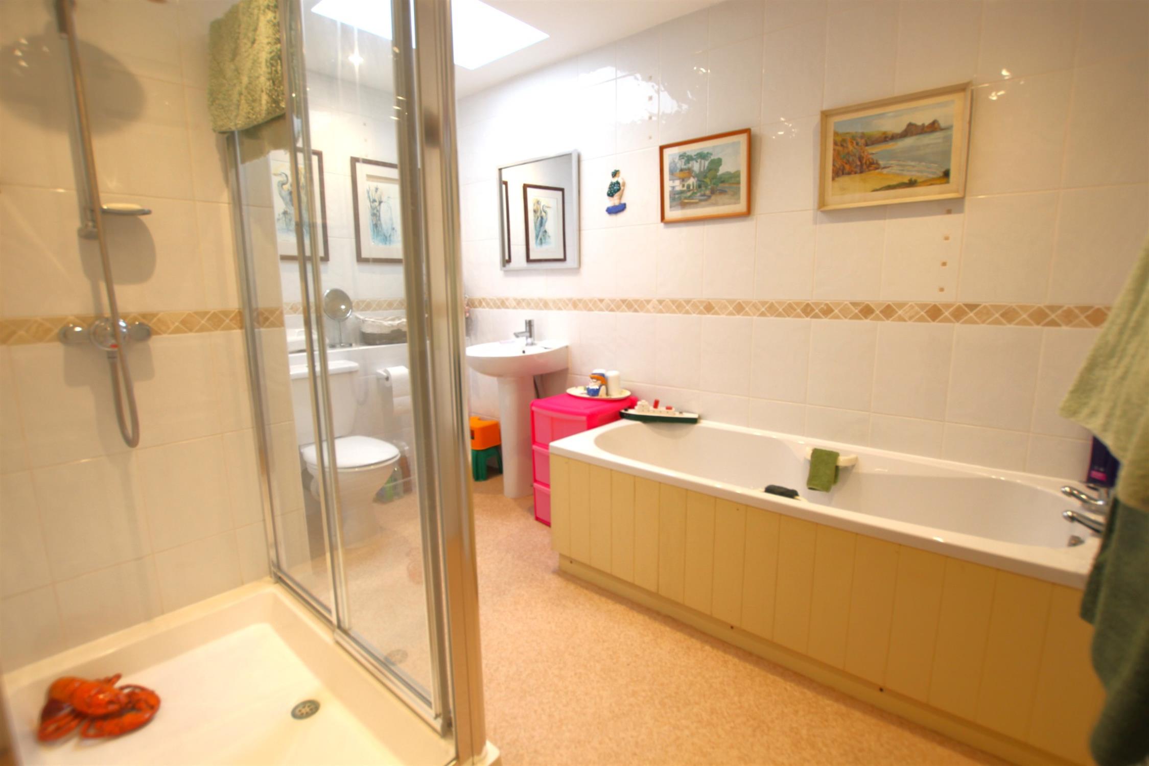 FAMILY BATHROOM Skylight window. A four piece suite includes bath, wash basin with mixer taps, dual flush WC and a separate tiled shower cubicle with a plumbed shower over, new chrome towel rail, tiled wall surrounds.