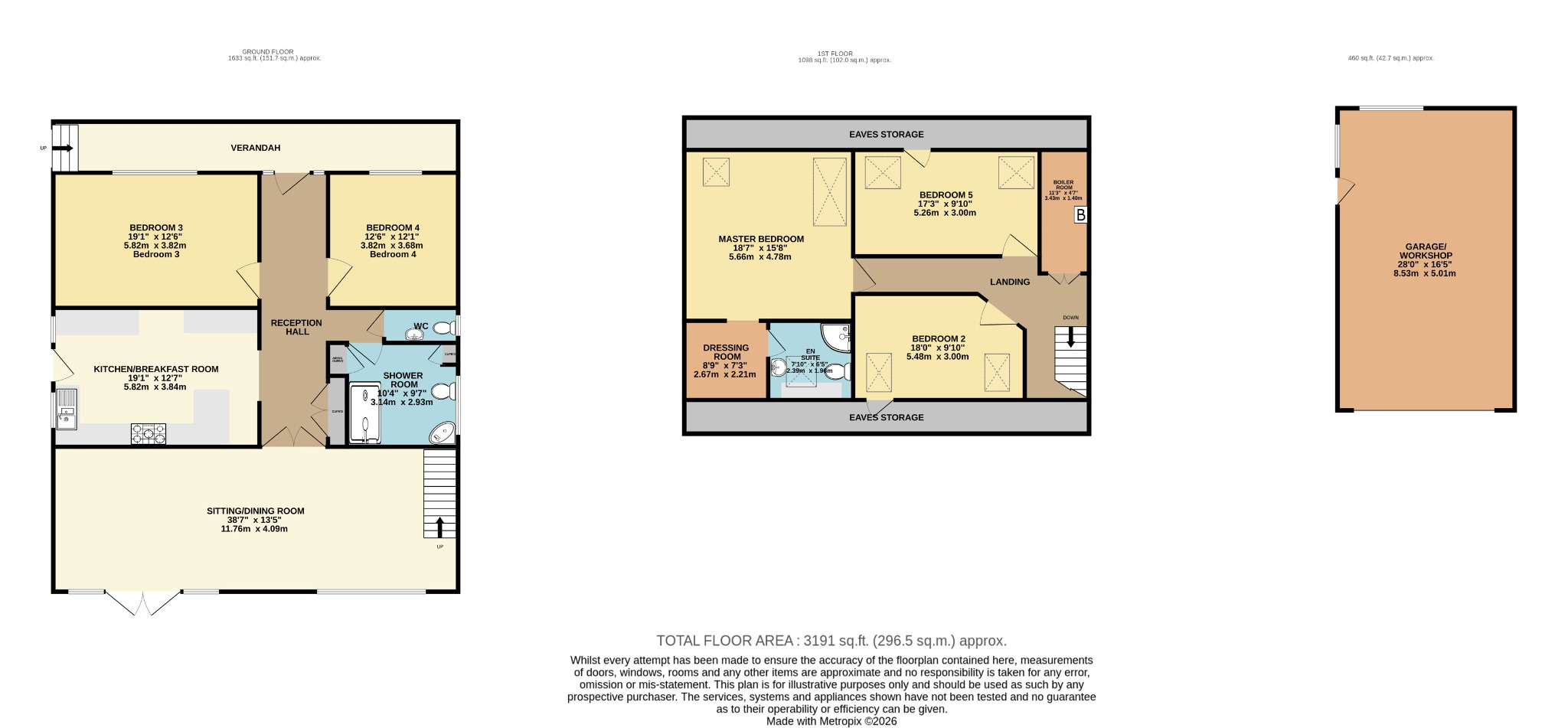 Double glazed Upvc door and windows to rear and side elevations. Pitched roof with eaves storage, power and light, electric up and over door.