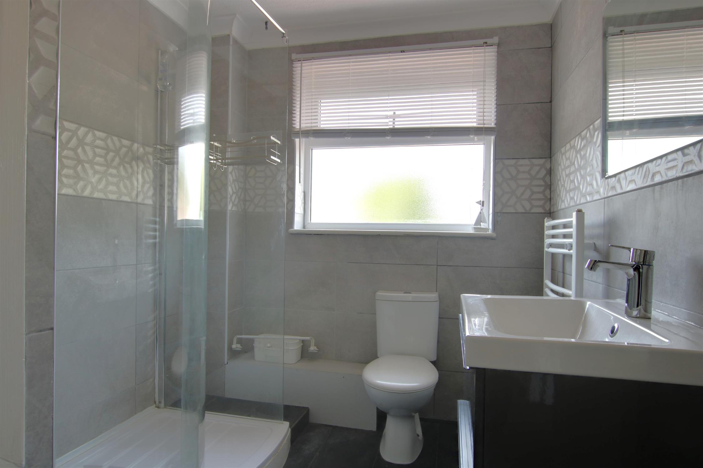 Upstairs, offers a large principal bedroom with fitted wardrobes, a second spacious double bedroom and the third, a generous single bedroom. A contemporary shower room serves all three bedrooms.