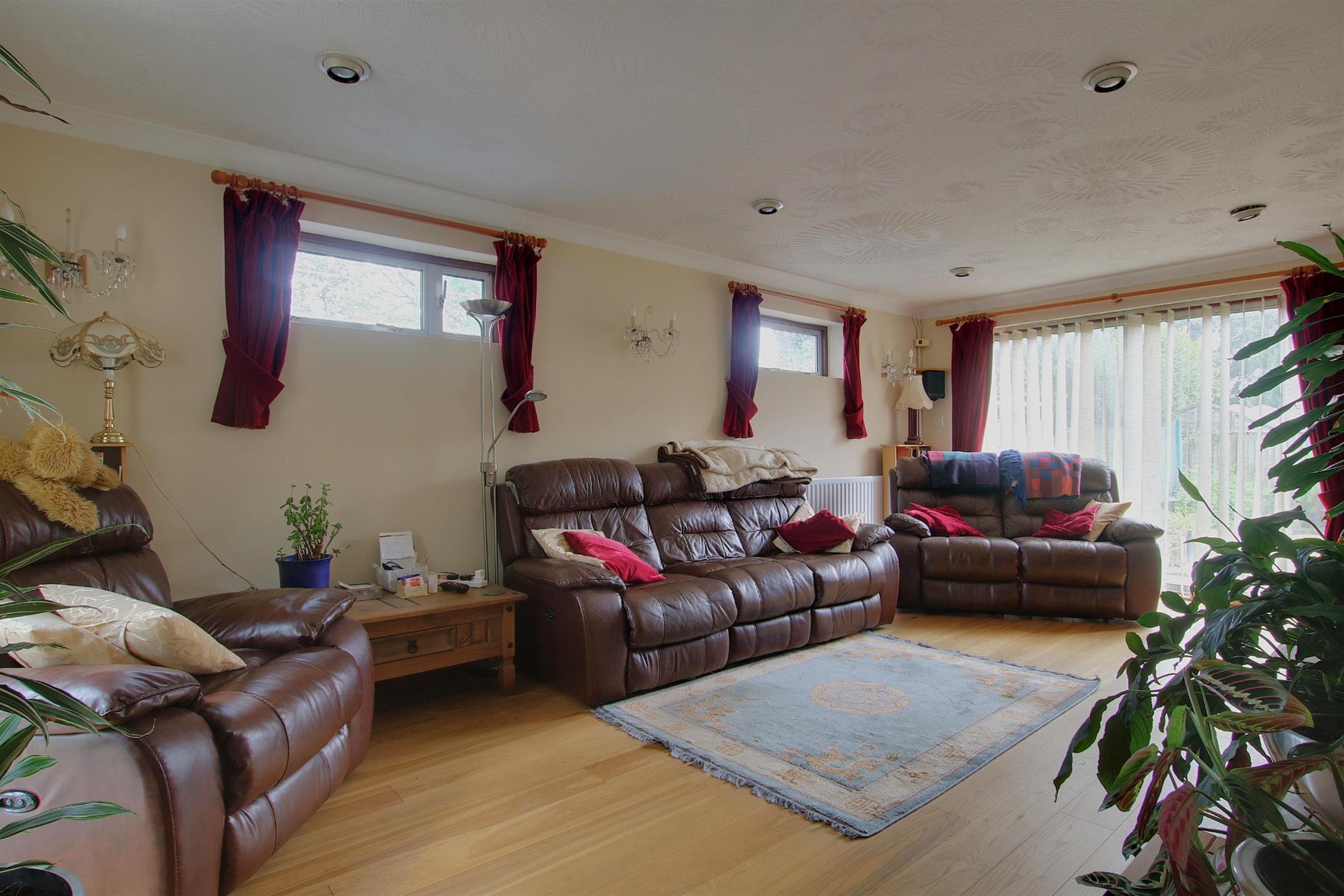 Upon arrival, a spacious porch with built-in storage welcomes you into a bright and inviting entrance hallway, with access to both the living space and the staircase to the first floor. The triple-aspect sitting room is flooded with natural light from a large front-facing window, side windows, and patio doors leading into the rear garden, offering a warm and comfortable setting for relaxation or entertaining. At the heart of the home lies the beautifully extended open-plan kitchen and dining area, providing a stylish and social space perfect for family life. This flows seamlessly into a neat conservatory that opens directly onto the rear garden, further enhancing the home’s indoor-outdoor appeal.