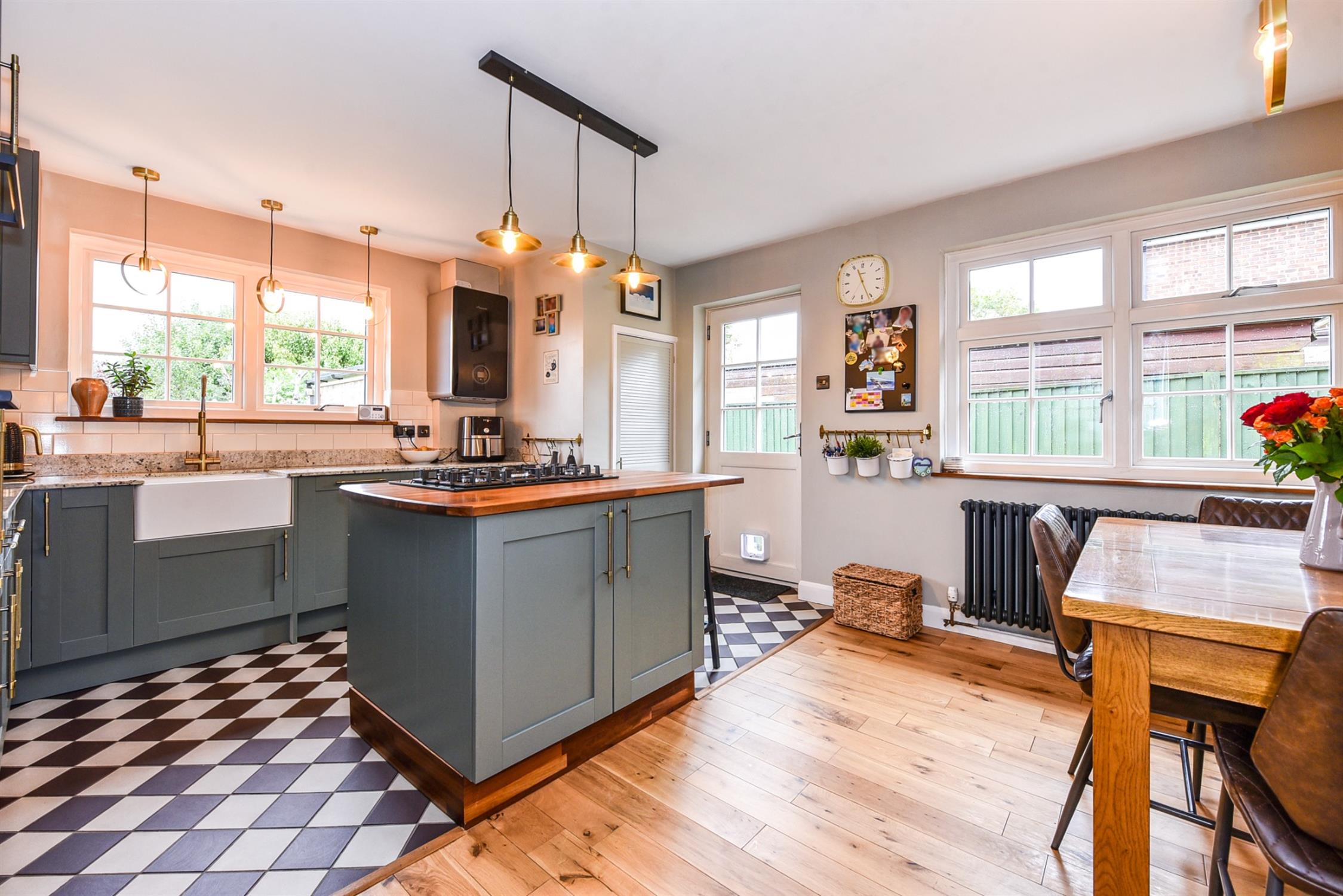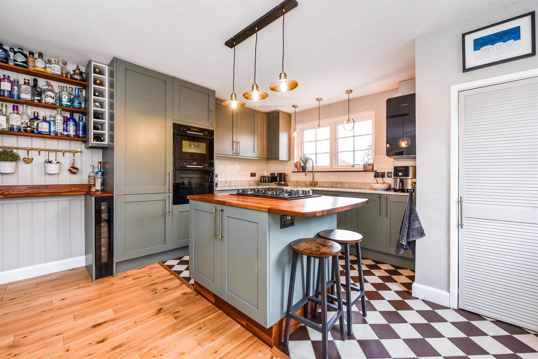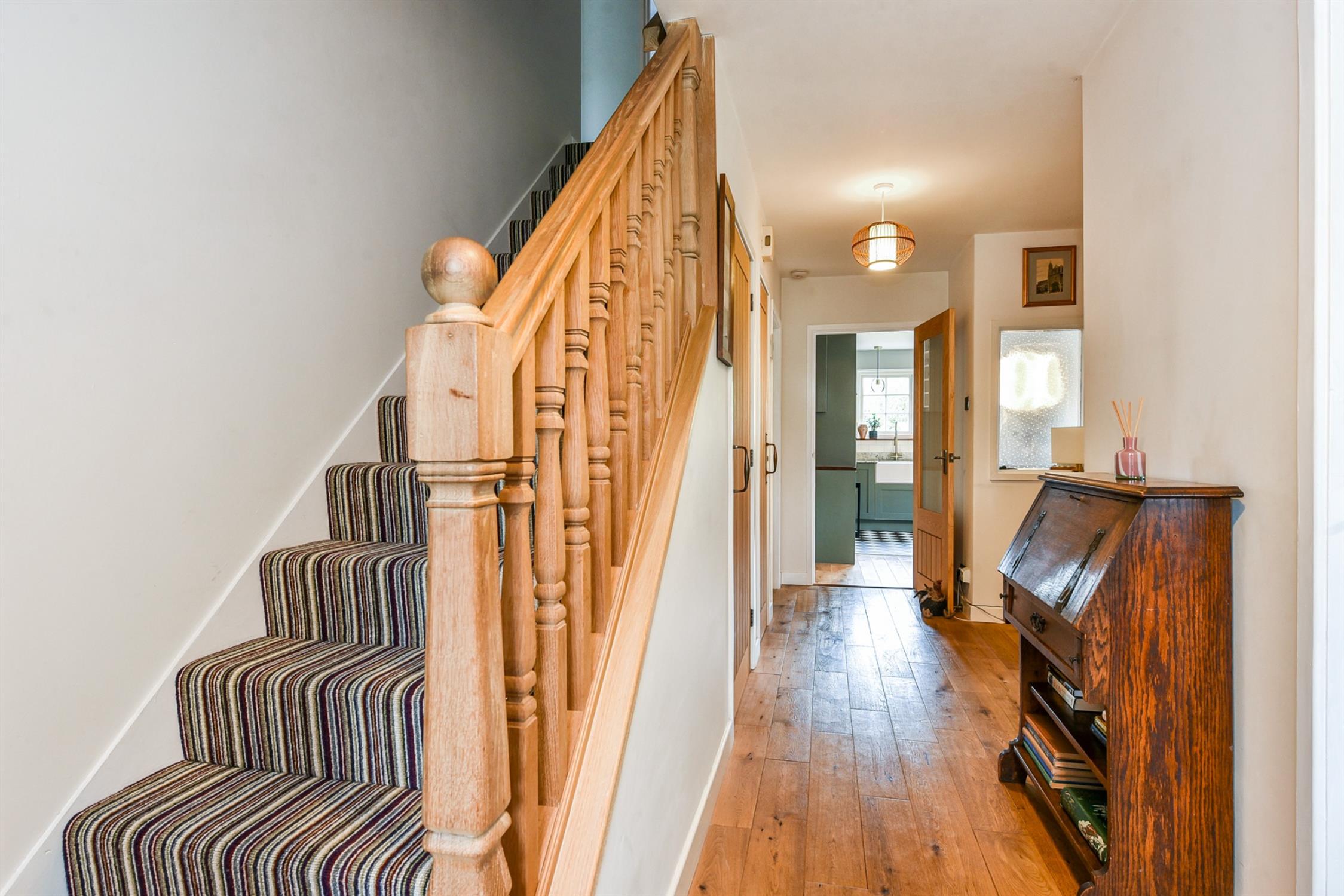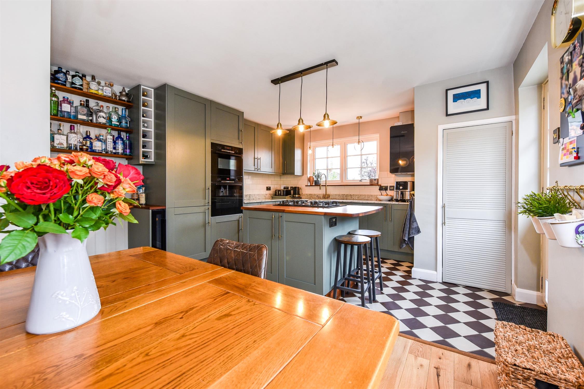 A neat storm porch opens into the generous entrance hall which leads to all principal ground floor rooms. A well-equipped open-plan kitchen/diner, opens into the garden, benefiting from an integrated fridge/freezer, dishwasher, gas hob, oven, microwave, wine cooler, and a useful pantry. The nearby utility room provides space for the washing machine, dryer and incorporates the guest cloakroom. A characterful sitting room with a wood burning stove adds to the charm and benefits from a rear aspect and opens onto a decked entertaining area. Home working is well catered for with a generous study which could be utilised as a fifth double bedroom.