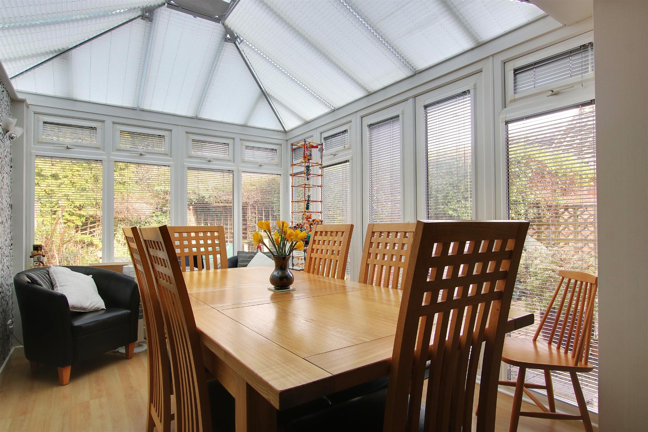 Designed for versatility, the extended ground floor boasts a contemporary kitchen, a bright and spacious open-plan dining room/conservatory, and a separate sitting room. A dedicated family room provides the perfect space for a home office or playroom, while the large utility room and convenient guest cloakroom add to the home’s practicality.