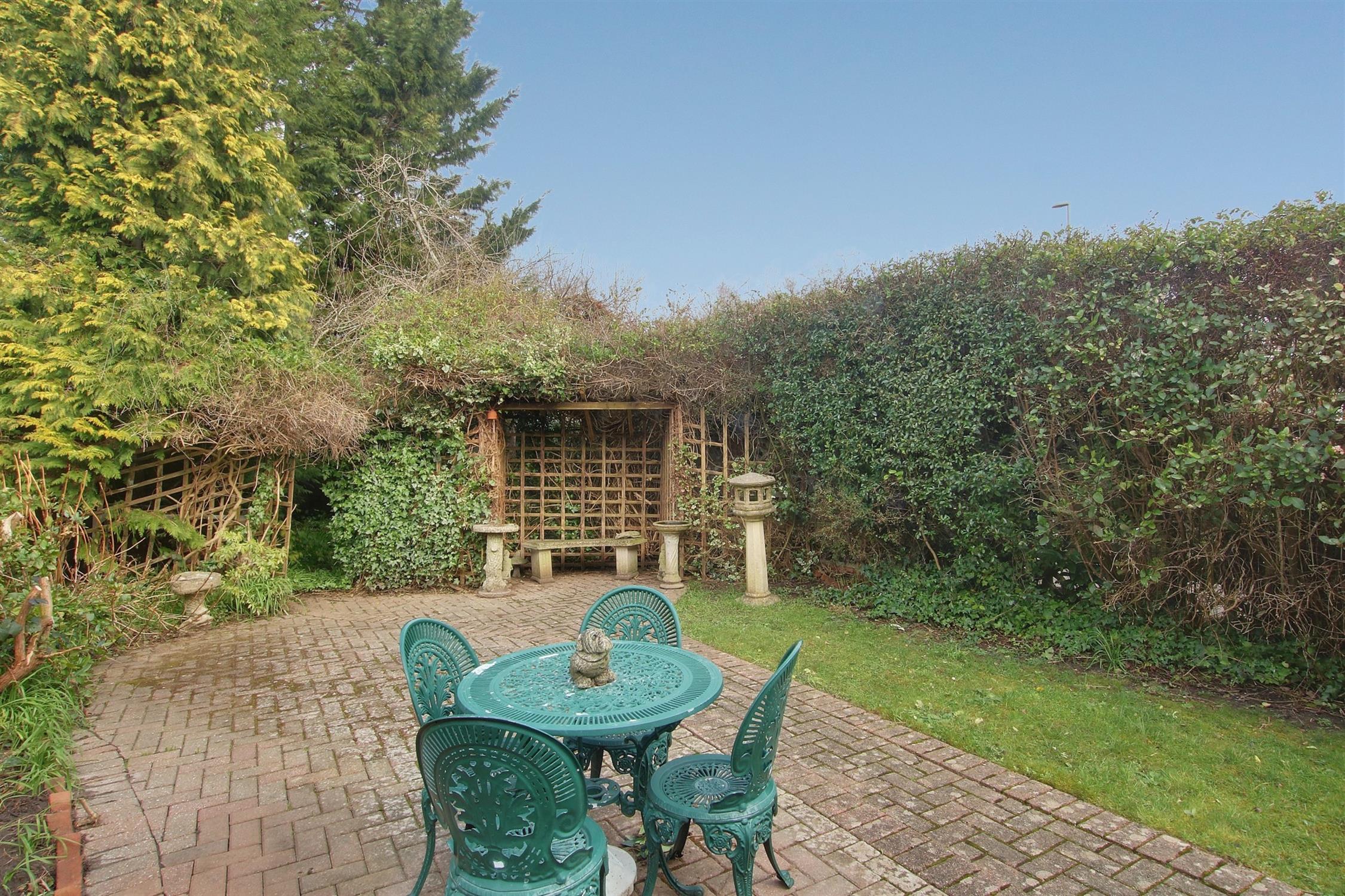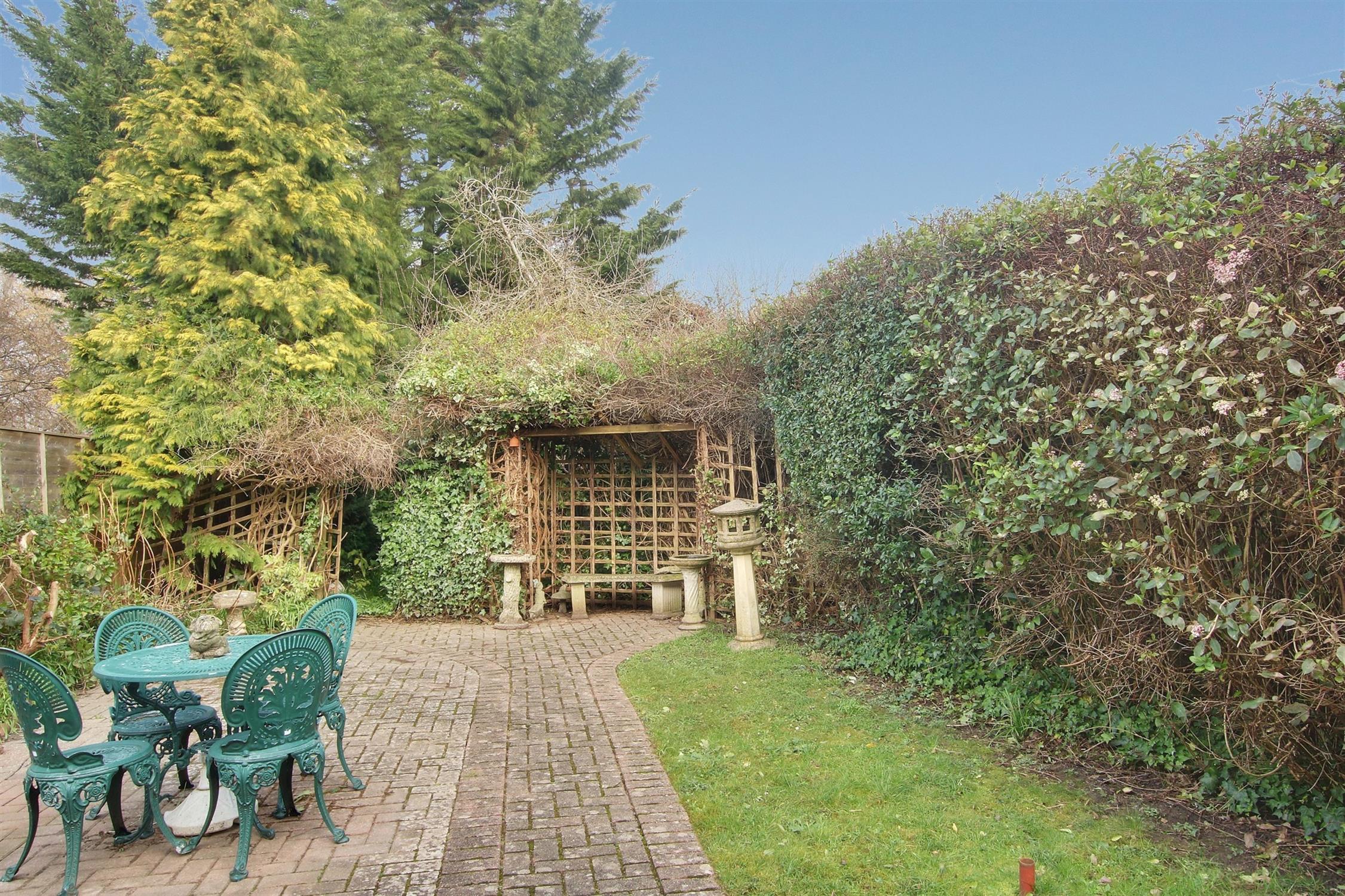 To the front, a well-maintained garden and driveway lead to the garage, with the potential to create substantial additional off-road parking (subject to relevant permissions). The enclosed rear garden, surrounded by established planting, offers a great outdoor retreat with a good degree of privacy.