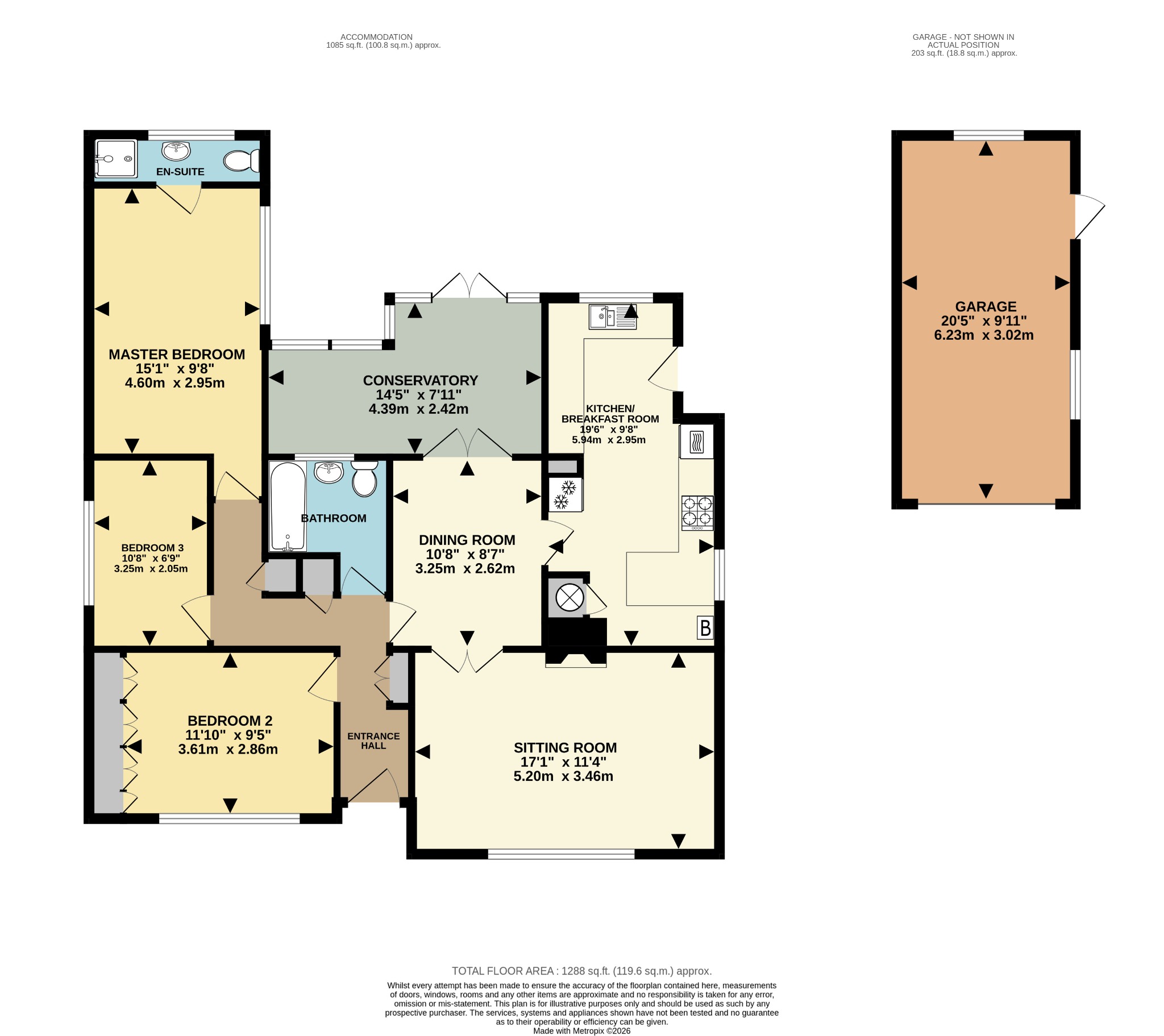 A welcoming and spacious entrance hall sets the tone, providing seamless access to the principal accommodation. The principal bedroom is a generous double, complete with its own en-suite shower room. A second well-proportioned double bedroom, with built-in wardrobes and a versatile third bedroom, ideal as a guest room, study, or hobby space, are served by a well-appointed family bathroom. The living spaces flow beautifully for both everyday comfort and entertaining. The dining room is light and airy, creating a wonderful setting for hosting, and leads effortlessly into the spacious sitting room where a feature fireplace forms an attractive focal point. Doors also open into the superbly upgraded conservatory featuring a fully insulated solid roof, transforming the space into a true year-round room. Enhanced by elegant orangery-style windows, the design combines the light and openness of a traditional conservatory with the comfort and thermal efficiency of a permanent extension, offering a tranquil vantage point over the garden and an ideal space to relax throughout the seasons. The kitchen/breakfast room is modernised, neatly presented, and thoughtfully designed, providing ample workspace and direct access to the garden.