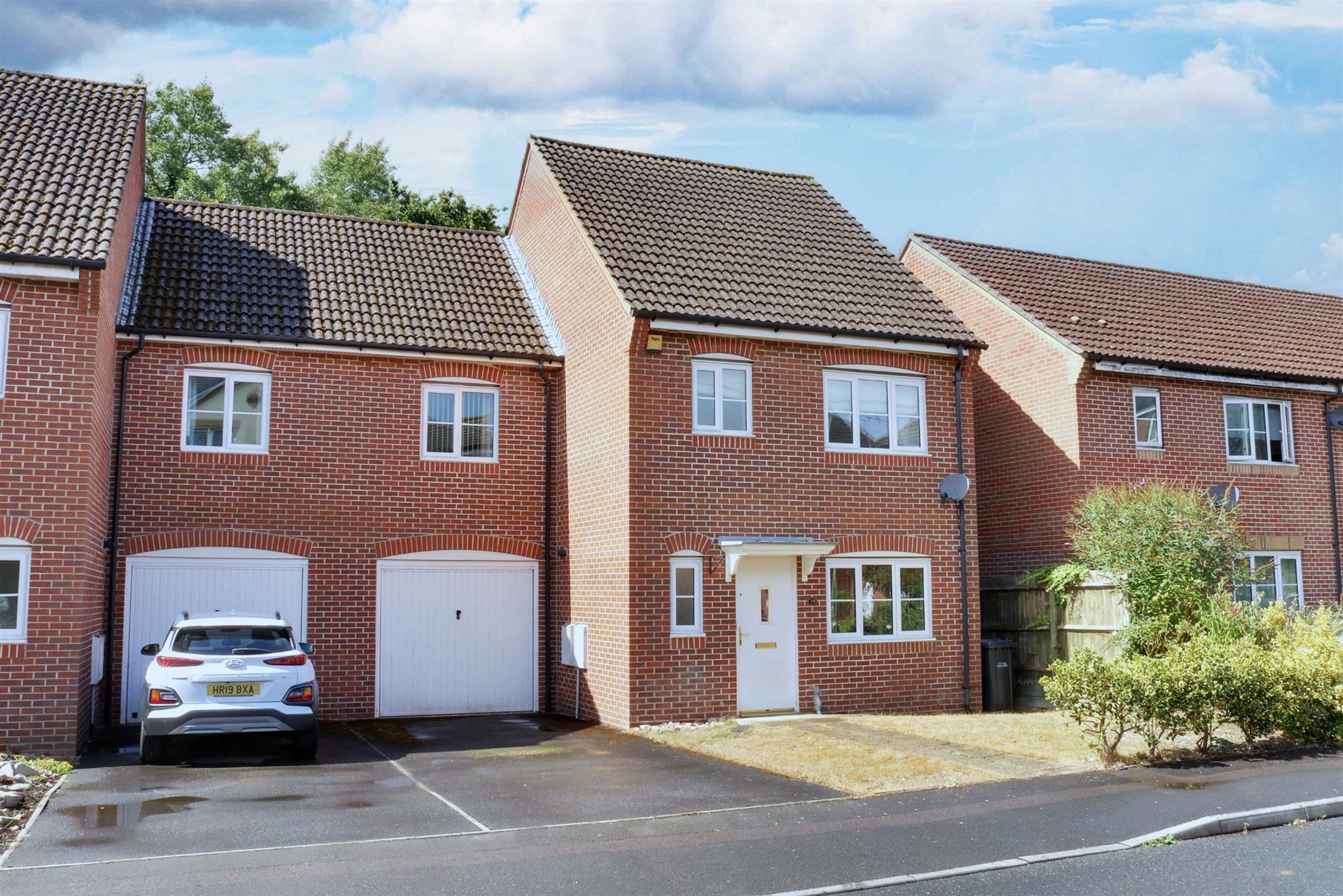 To the front is an open plan garden mainly laid to lawn alongside which is a driveway with parking for two cars leading to the large integral garage (19'6 x 9'7) with up-and-over door, power and light, and personal door at the rear. There is gated access at the side of the property leading to the rear garden which is enclosed by close board fencing and mainly laid to lawn with a paved patio and garden shed.