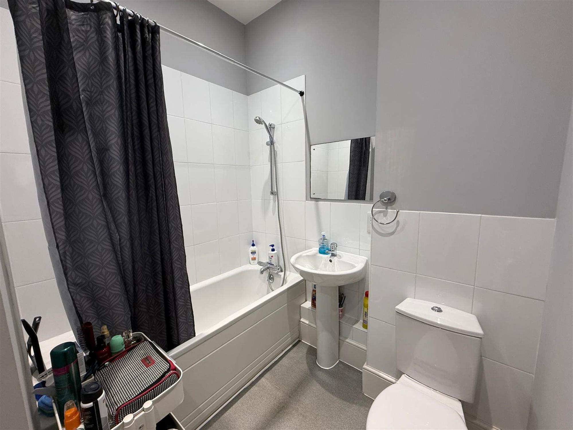 BATHROOM:- Shower over bath, sink, toilet and heated towel rail