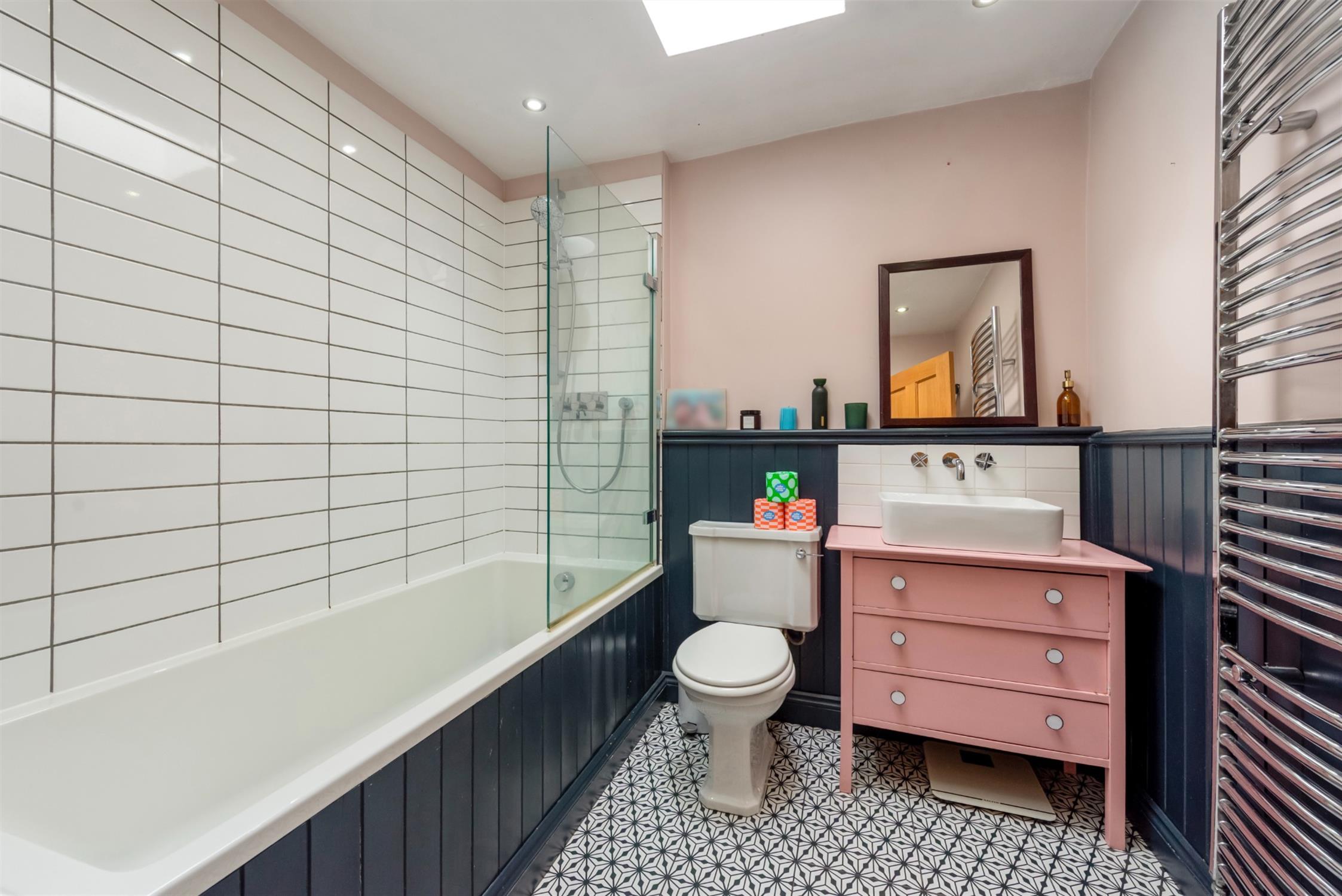 Upstairs, the first floor offers a generous principal bedroom to the front, with fitted wardrobes and the added benefit of an en-suite shower room. There are two further double bedrooms on this level, along with a well-appointed family bathroom.