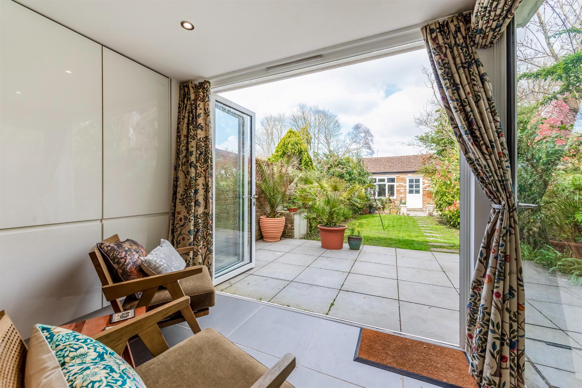 OutsideThe rear garden, which gets plenty of sunshine during the summer, is beautifully arranged, with a paved patio area immediately behind the house, ideal for outdoor dining. The remainder is laid to lawn and framed by mature flower and shrub borders, creating a private and established feel. Towards the end of the garden, a shingled seating area has been positioned to make the most of the evening sun.