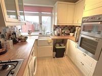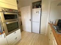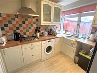 Window to rear. Range of wall and base units with work surface over. Butler sink with drainer. Tiled splashbacks. 4 ring gas hob with extractor over. Built in eye level double electric oven. Space and plumbing for washing machine and dishwasher. Space for fridge freezer. Cupboard housing Vaillant gas combination boiler.