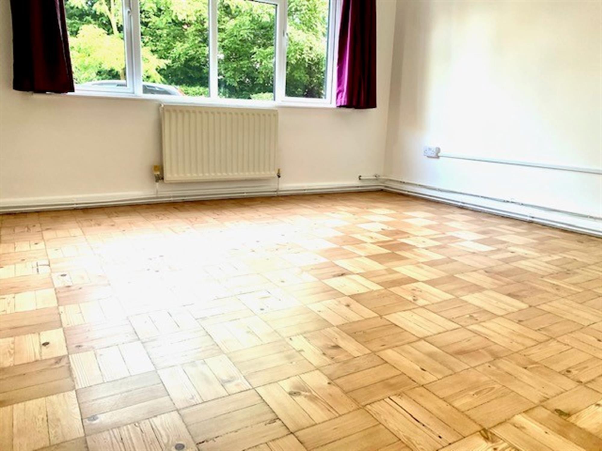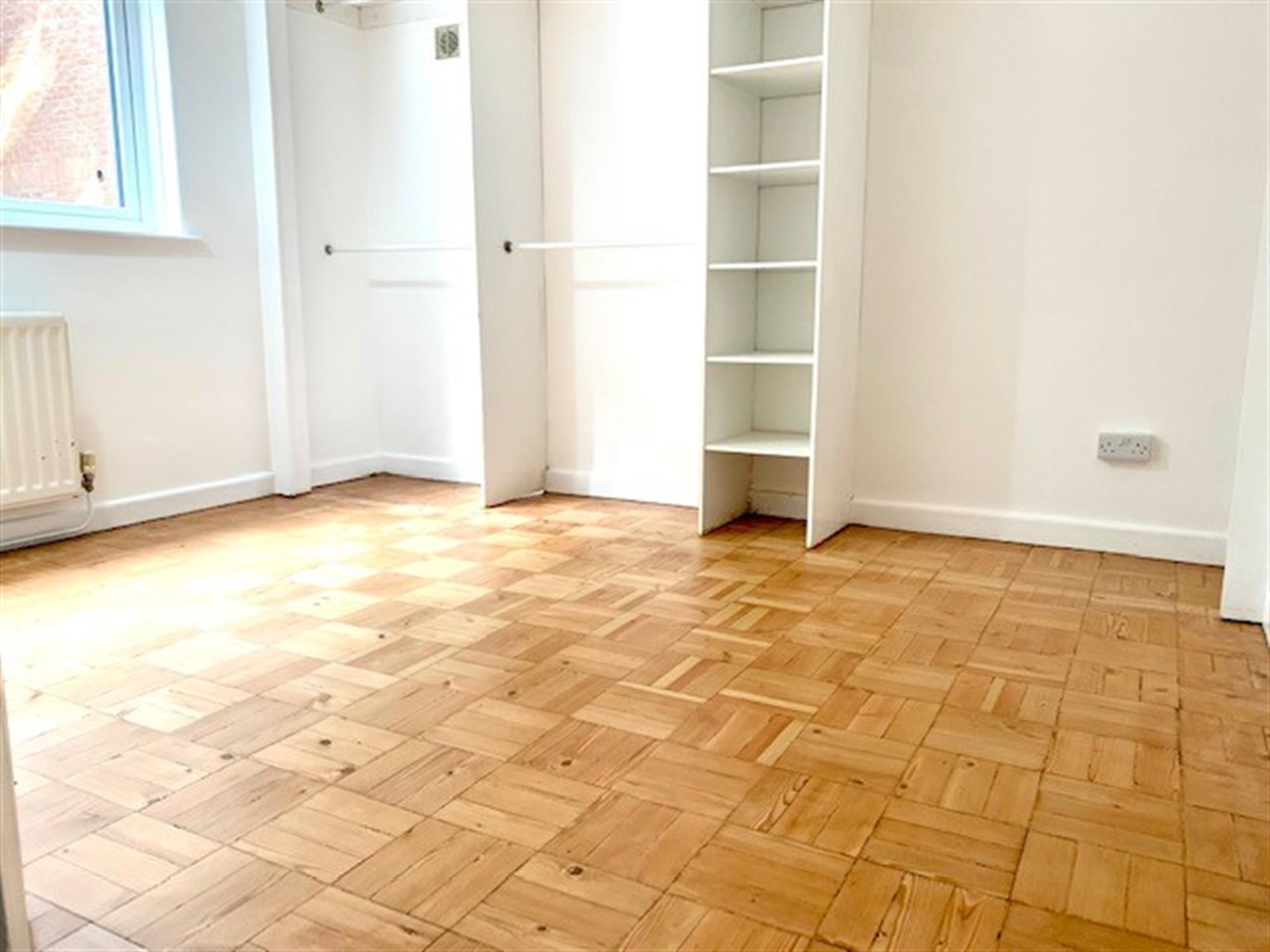 BEDROOM 2 – Double bedroom with window to rear and parquet flooring. Picture shows carcass of built in wardrobe although doors will be added for the tenancy.