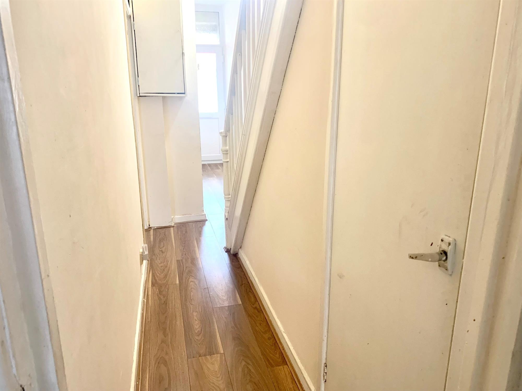 ENTRANCE – Laminate flooring with stairs to first floor, cupboard under stairs and doors to lounge, dining room and kitchen.