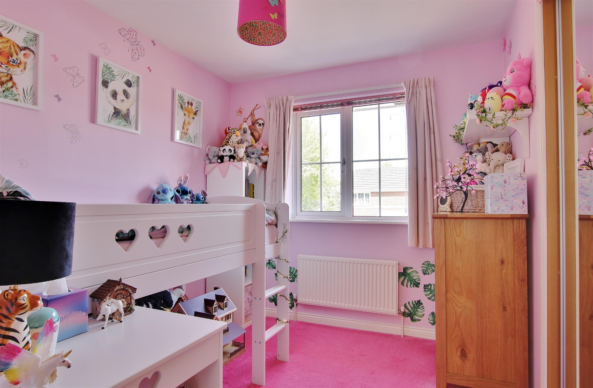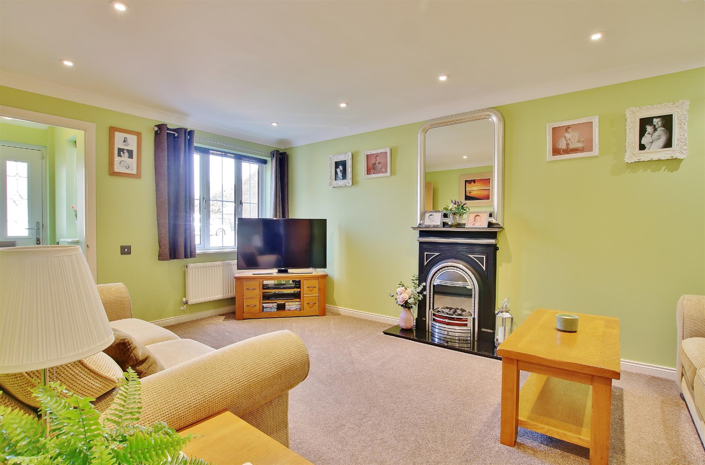 To the front is a neat garden laid with artificial turf and pretty flower bed, beside which is a double-width driveway with parking for two cars and a useful EV charging point. There is gated side access to the rear garden which enjoys a south-facing aspect with protected woodland to the rear providing a wonderfully private backdrop. A large patio adjoining the family room is made for al-fresco dining, with the remainder principally laid to lawn having a central path leading to a garden shed. The garden is enclosed by close-board fencing with gated access into the woodland beyond.