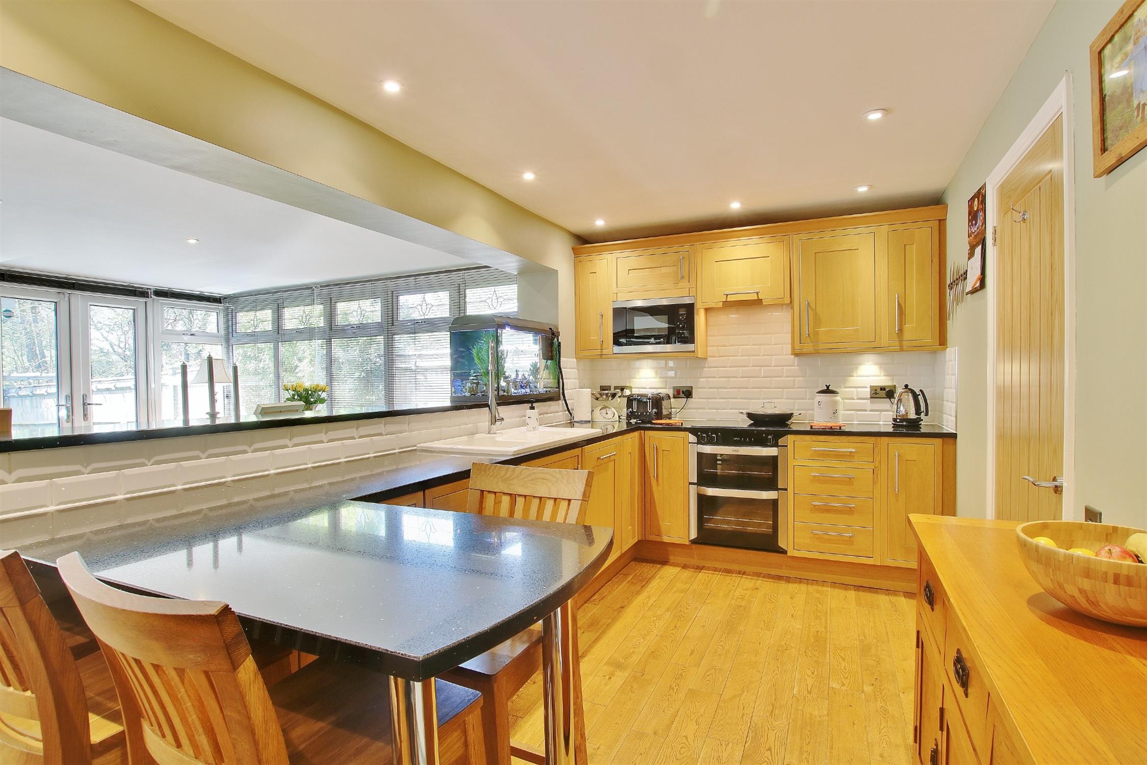 The kitchen area is beautifully fitted with granite worktops and a range of integrated appliances to include electric hob and double oven, microwave, washing machine and dishwasher, while the dining and family area with ornamental fireplace and doors to the garden is perfect for relaxing and socialising with friends and family.