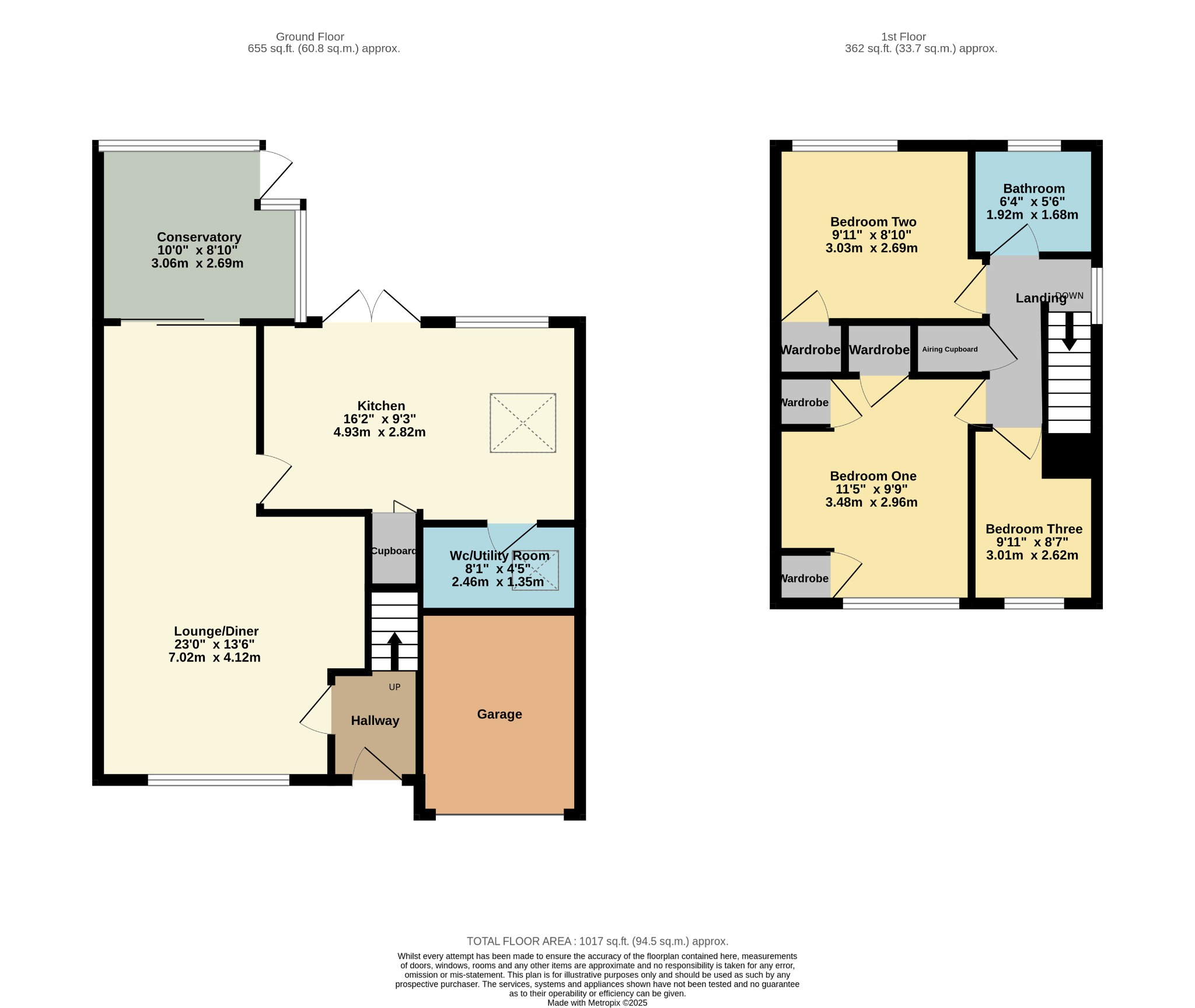 Light and bright, with double-glazed windows overlooking the rear garden, double doors opening outside, polycarbonate roof, tiled floor and two radiators.