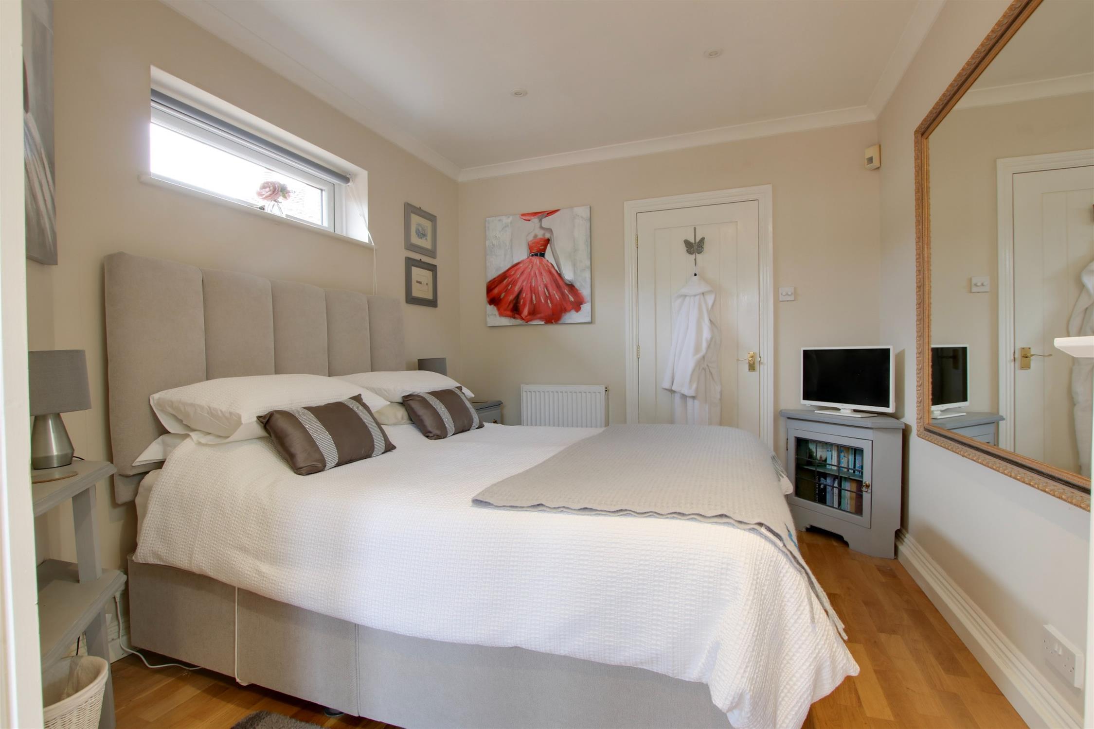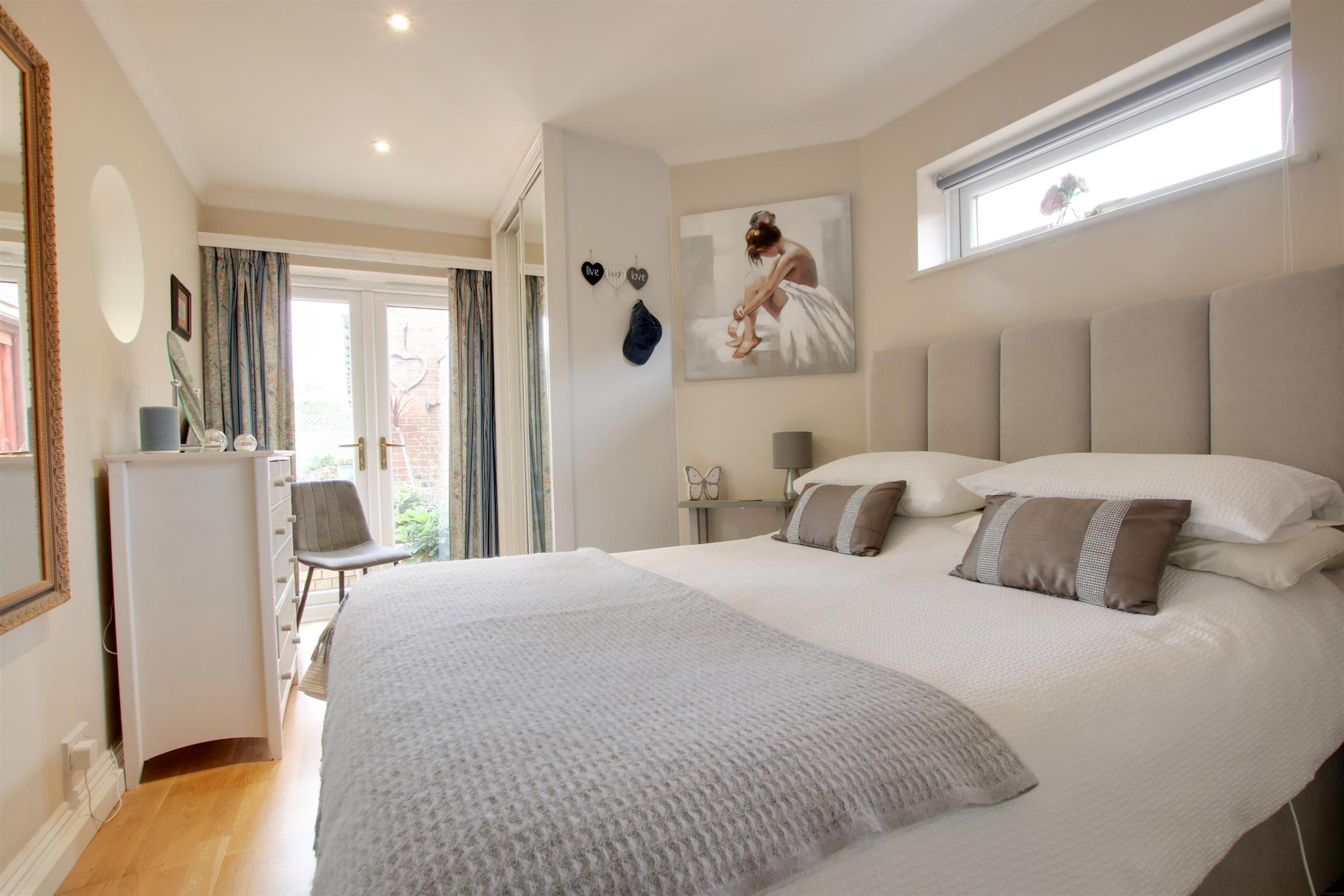 Double glazed high-level window to side elevation and double glazed French doors to garden. Wooden flooring. Inset ceiling spotlights. Built-in wardrobes with mirror fronted sliding doors.