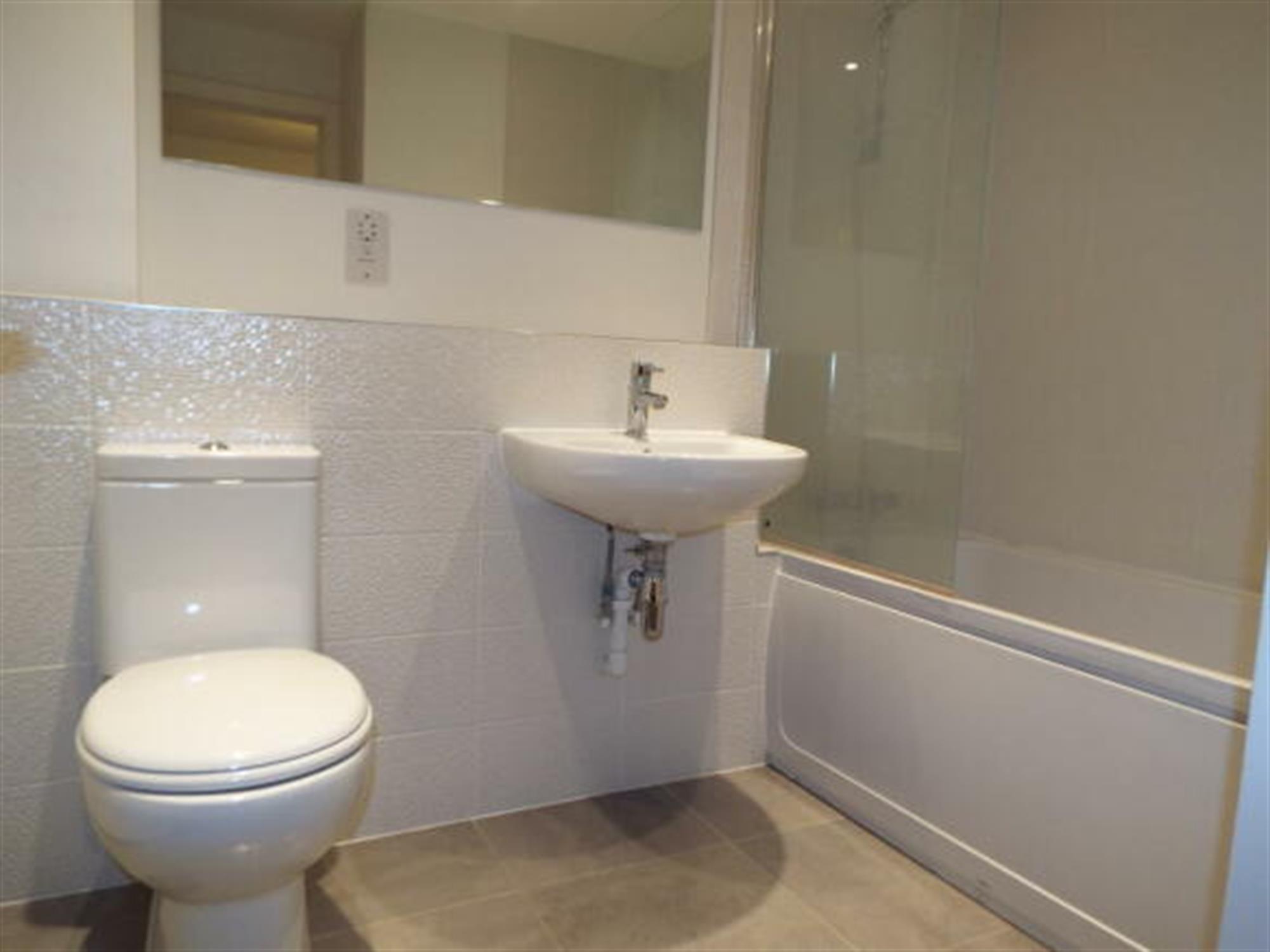 BATHROOM - Family white suite bathroom with shower over the bath.