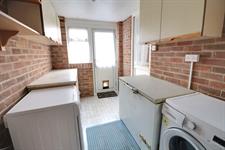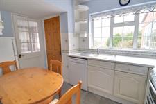 Fitted with a range of wall and base units with worksurfaces over, spaces for cooker, dishwasher and fridge/freezer, inset one-and-a-half bowl stainless steel sink and drainer, rear aspect double glazed window, built-in cupboard housing the boiler, part glazed door leading to the utility room.