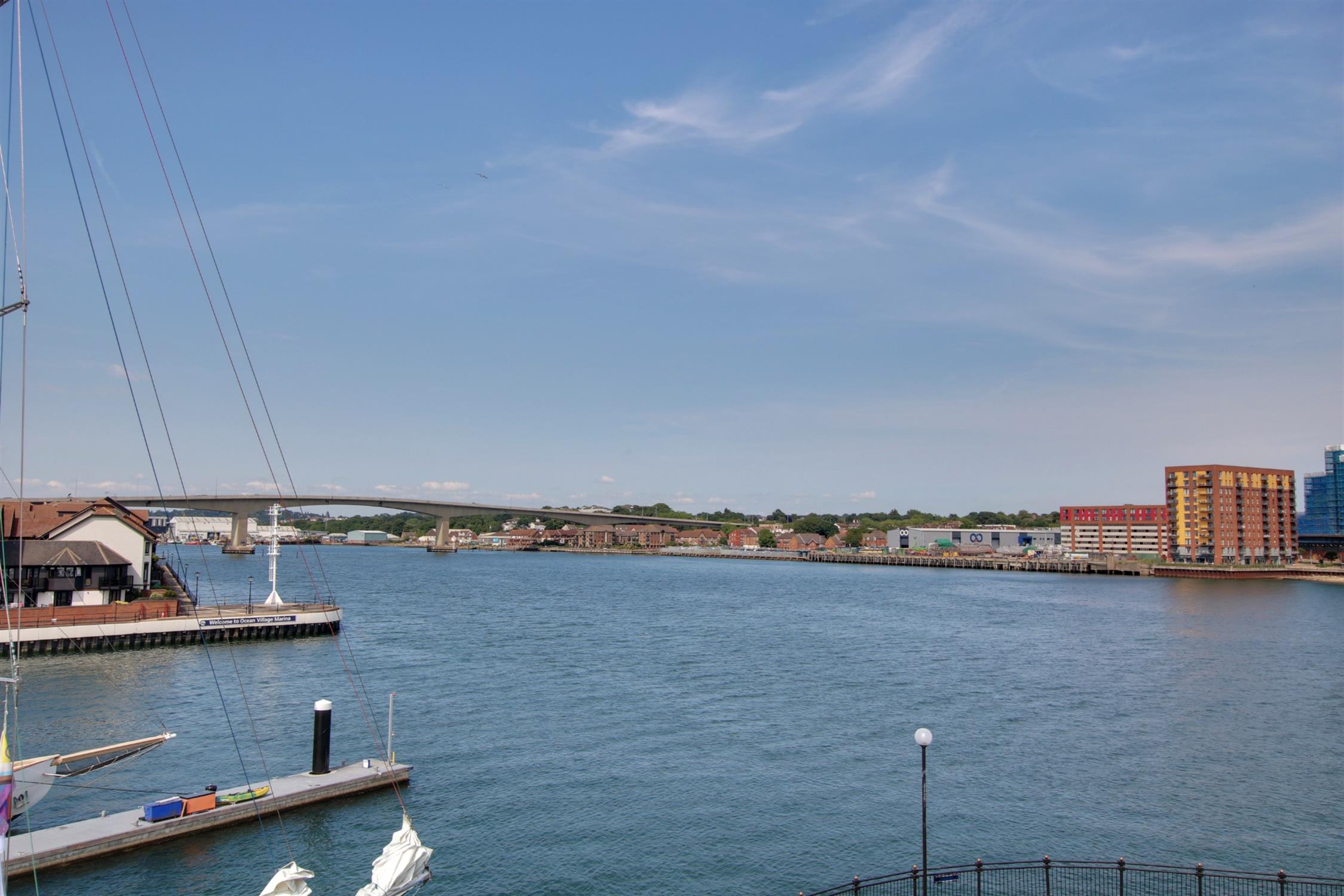 Non slip decked flooring. Glazed balustrade with shatter proof glass replaced in 2014. Outstanding panoramic views over Ocean Village Marina and the River Itchen.