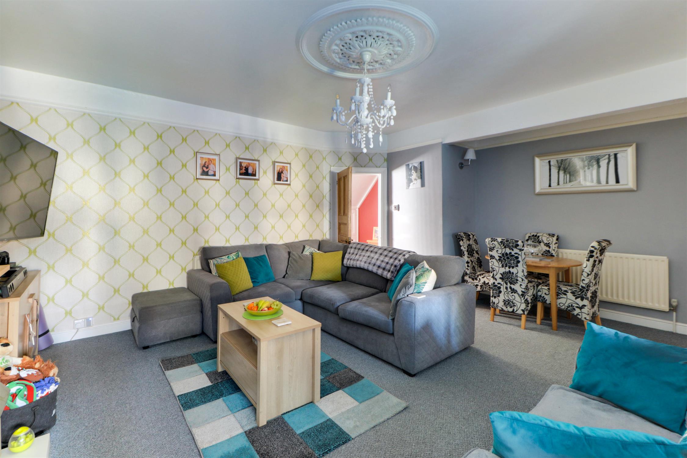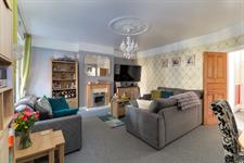 Smooth ceiling, ornate cornicing, ceiling rose, picture rails, UPVC double-glazed window, radiator and fitted carpet.