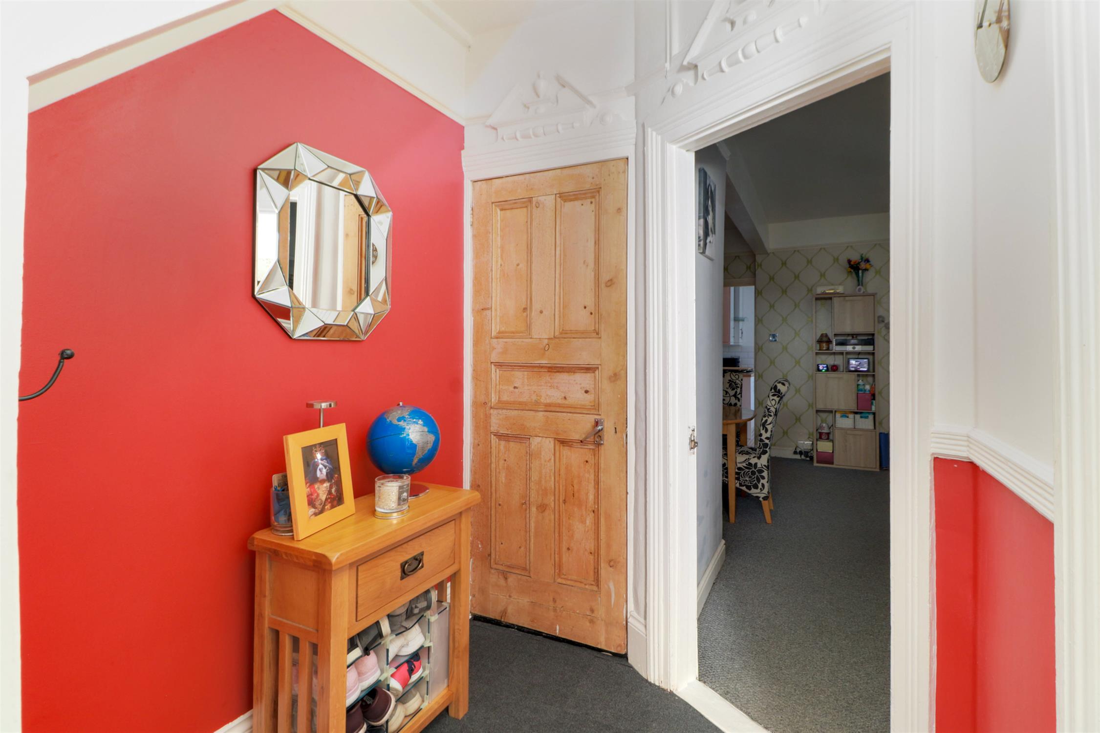 This well-presented ground floor flat occupies the lower level of a traditional bay-fronted period property and offers spacious, well-laid-out accommodation with the benefit of a private rear garden. Accessed via a communal entrance, the flat opens into a welcoming hallway leading through to a generous bedroom positioned at the front of the property, with bespoke built-in wardrobes and storage cupboards, a bay window, and period ceiling. At the centre of the flat is a large living/dining room, offering excellent flexibility.