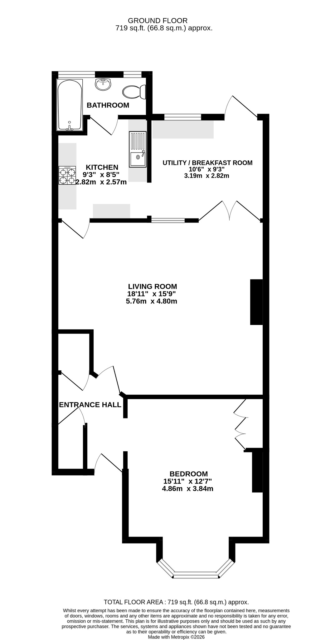 This room acts as the hub of the property and leads through to the modern fitted kitchen and a separate utility / breakfast room. This additional space is ideal for entertaining and enjoys double doors opening out to the rear garden. The flat further benefits from a bathroom located off the kitchen, fitted with a modern suite including bath with shower over, WC and wash basin. Externally, the property enjoys access to a private rear garden, mainly laid to lawn with additional seating areas and useful timber outbuildings providing storage or hobby space. Situated in a popular residential location close to local amenities and transport links, an early inspection is recommended to avoid disappointment.