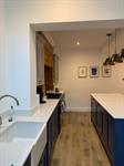 There is a great breakfast bar with five stools. Large dining table is not included.
