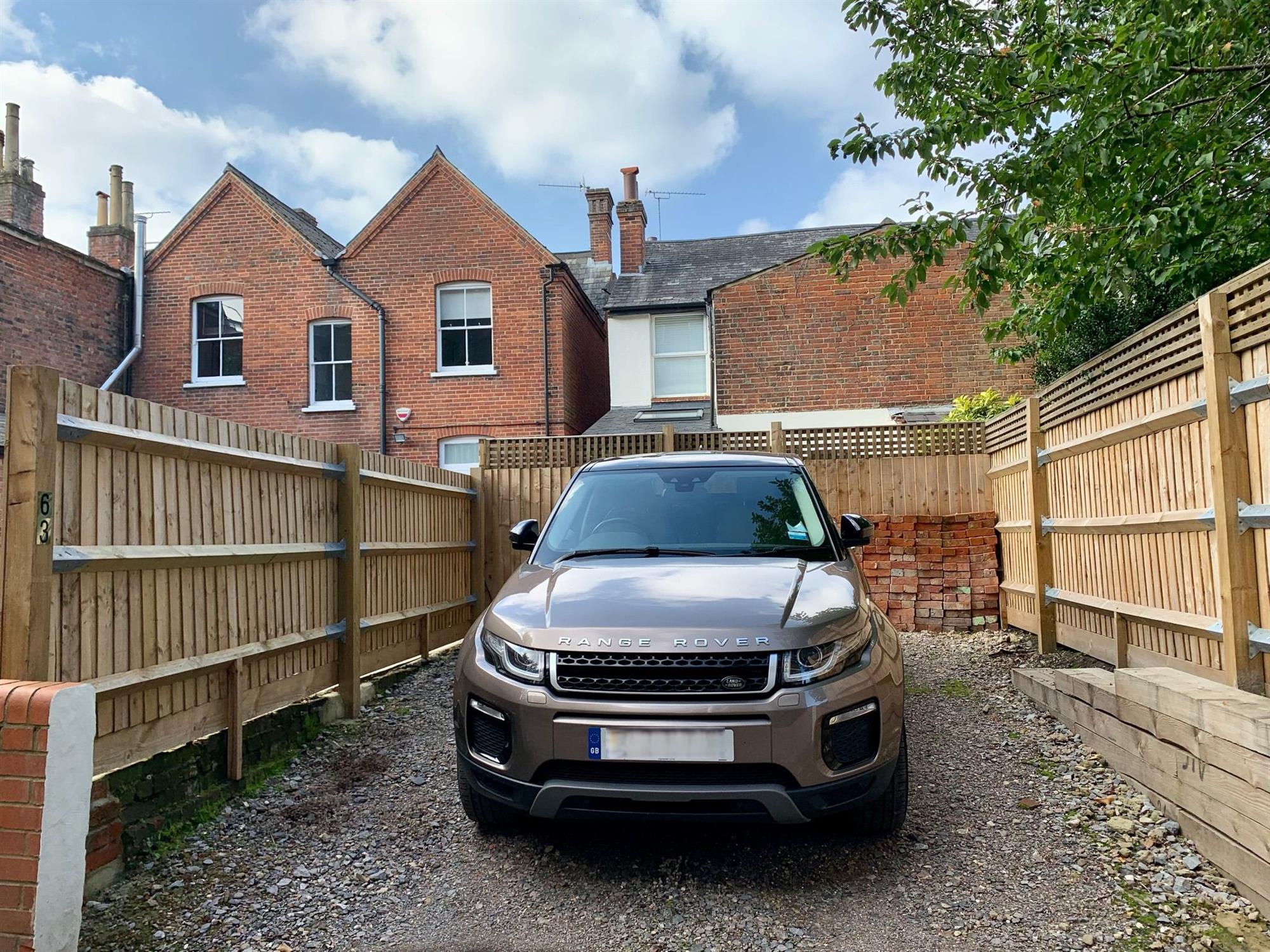 Driveway at the rear of the property. It is a good size for any large car. Addition vehicles can be parked in designated residents' parking areas using the parking permits (you must apply directly with the council).