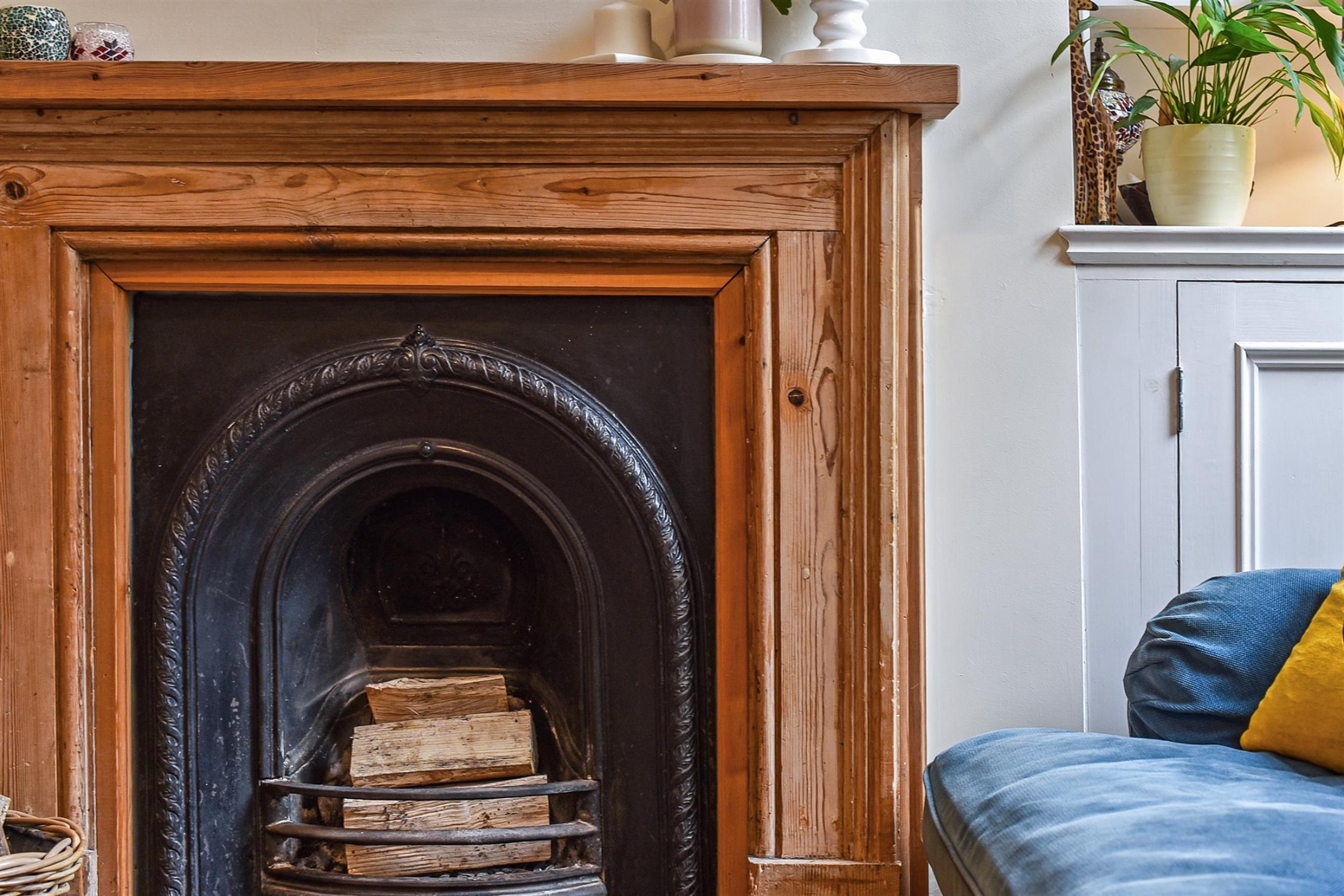 A cosy and welcoming open-plan space. The open fire has a granite hearth, timber mantel and surround. There is an under-stair cupboard for storage and and two further built in cupboards