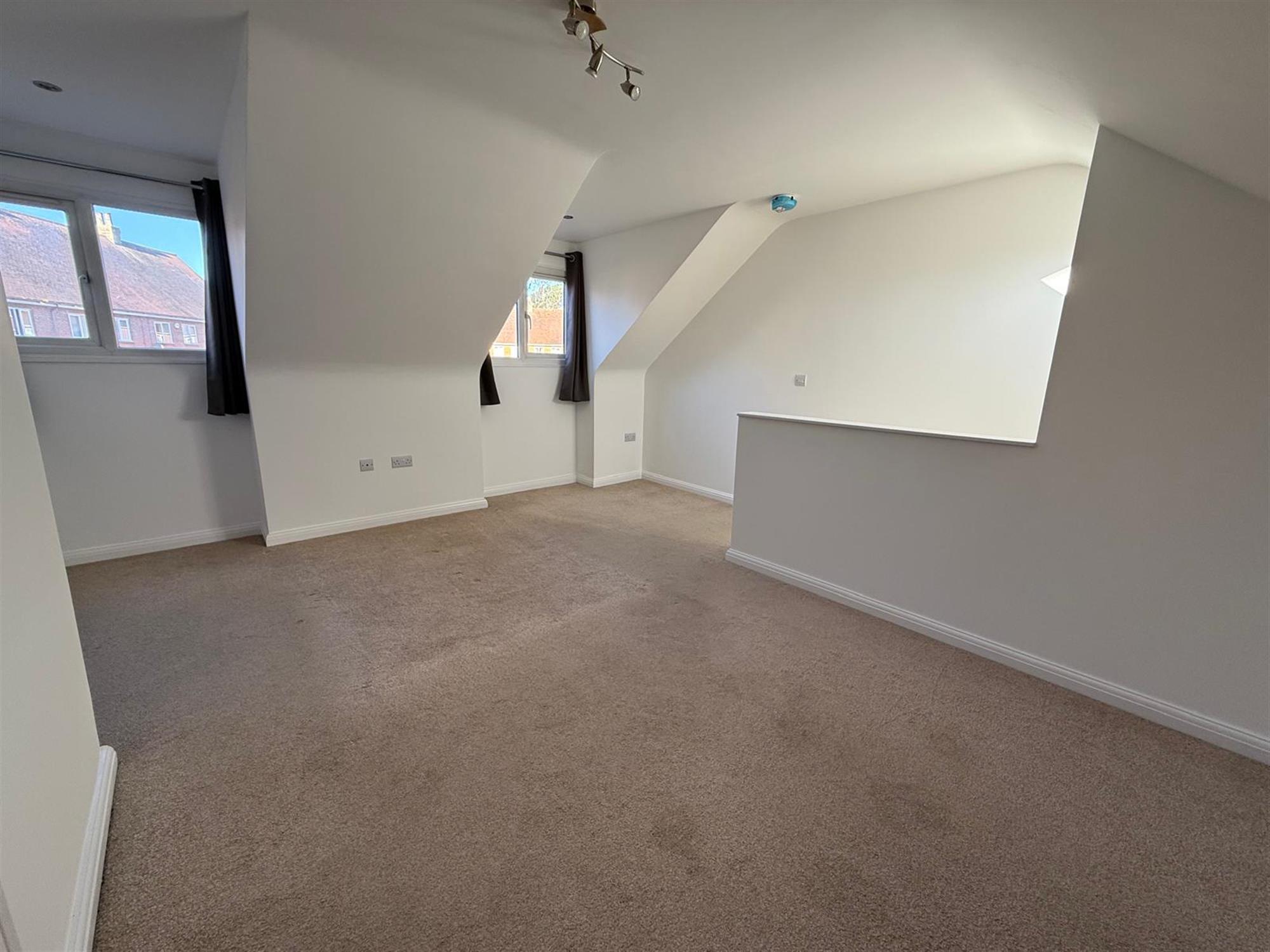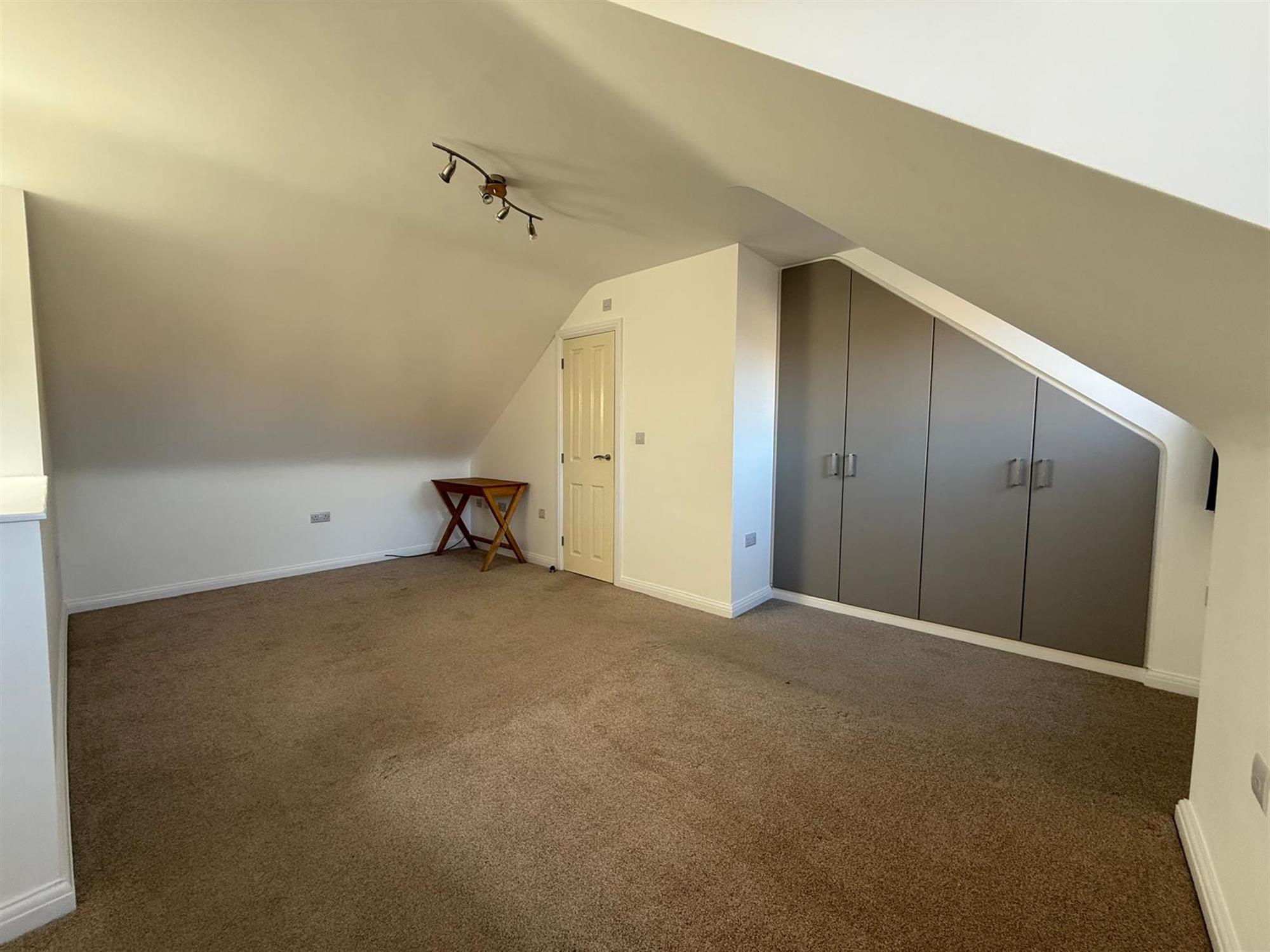 BEDROOM: Large room with wardrobes. Windows to rear aspect and velux window to ceiling above stairs. Door leading to;