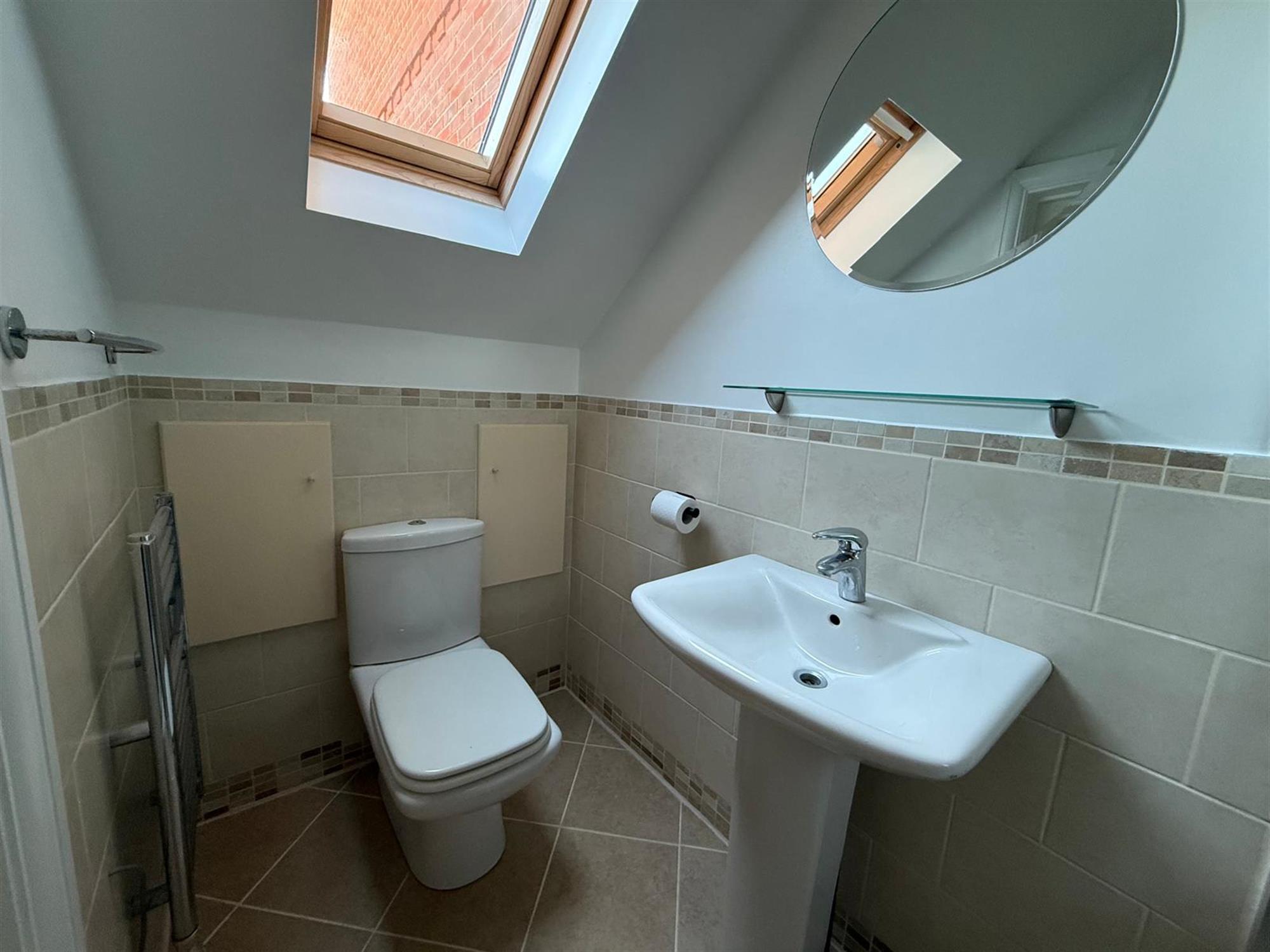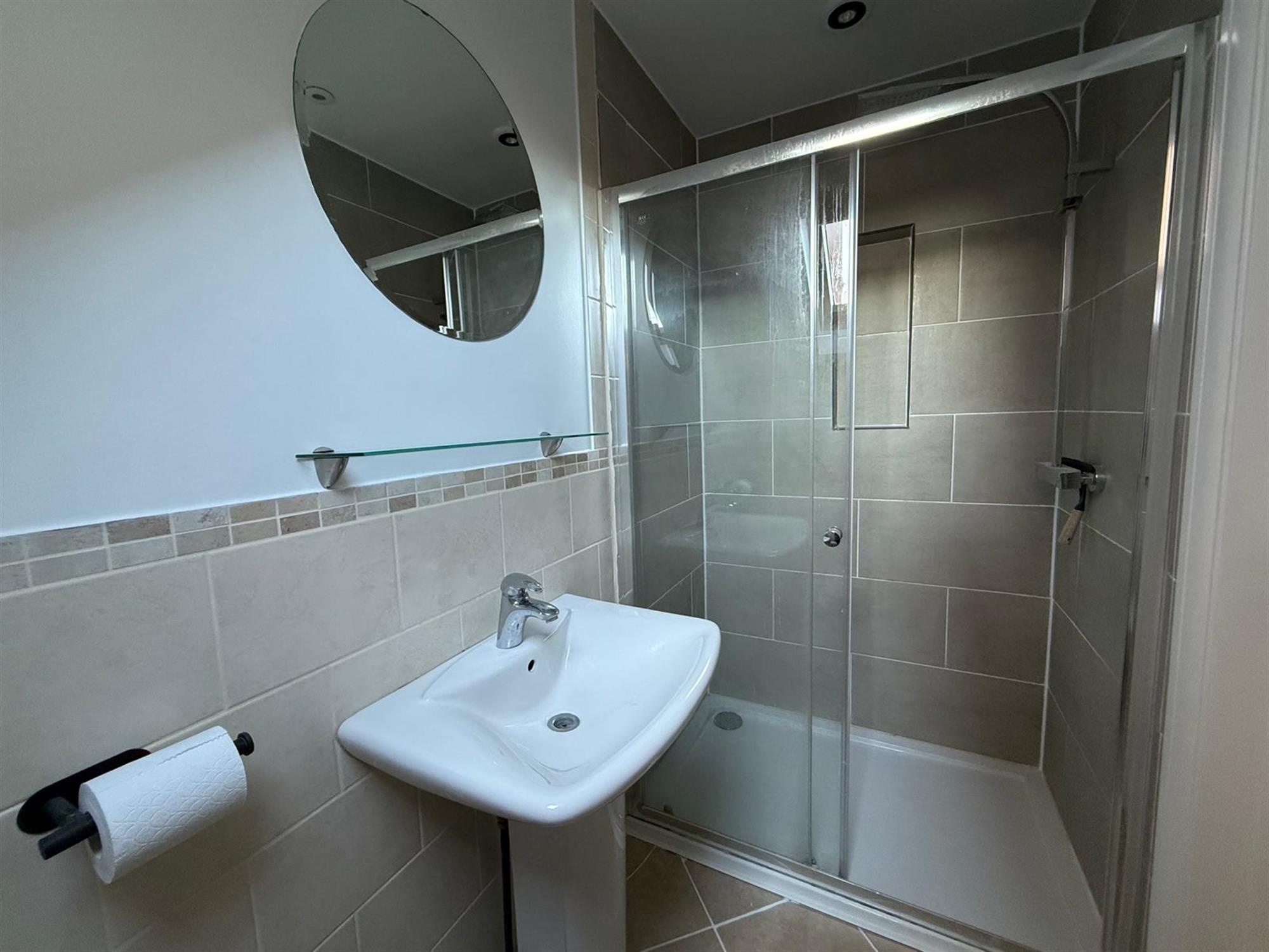 EN-SUITE: Walk in shower with sliding door, hand basin, toilet and velux window.
