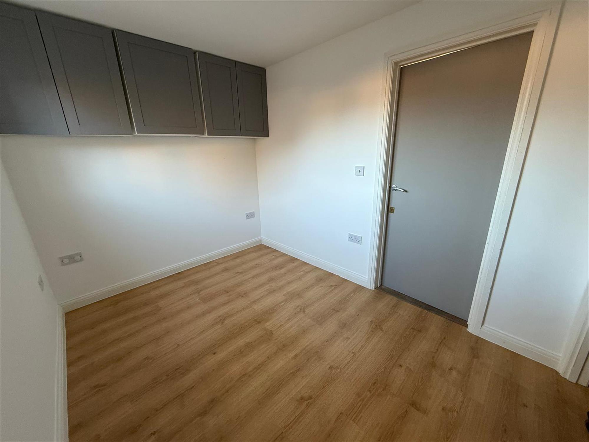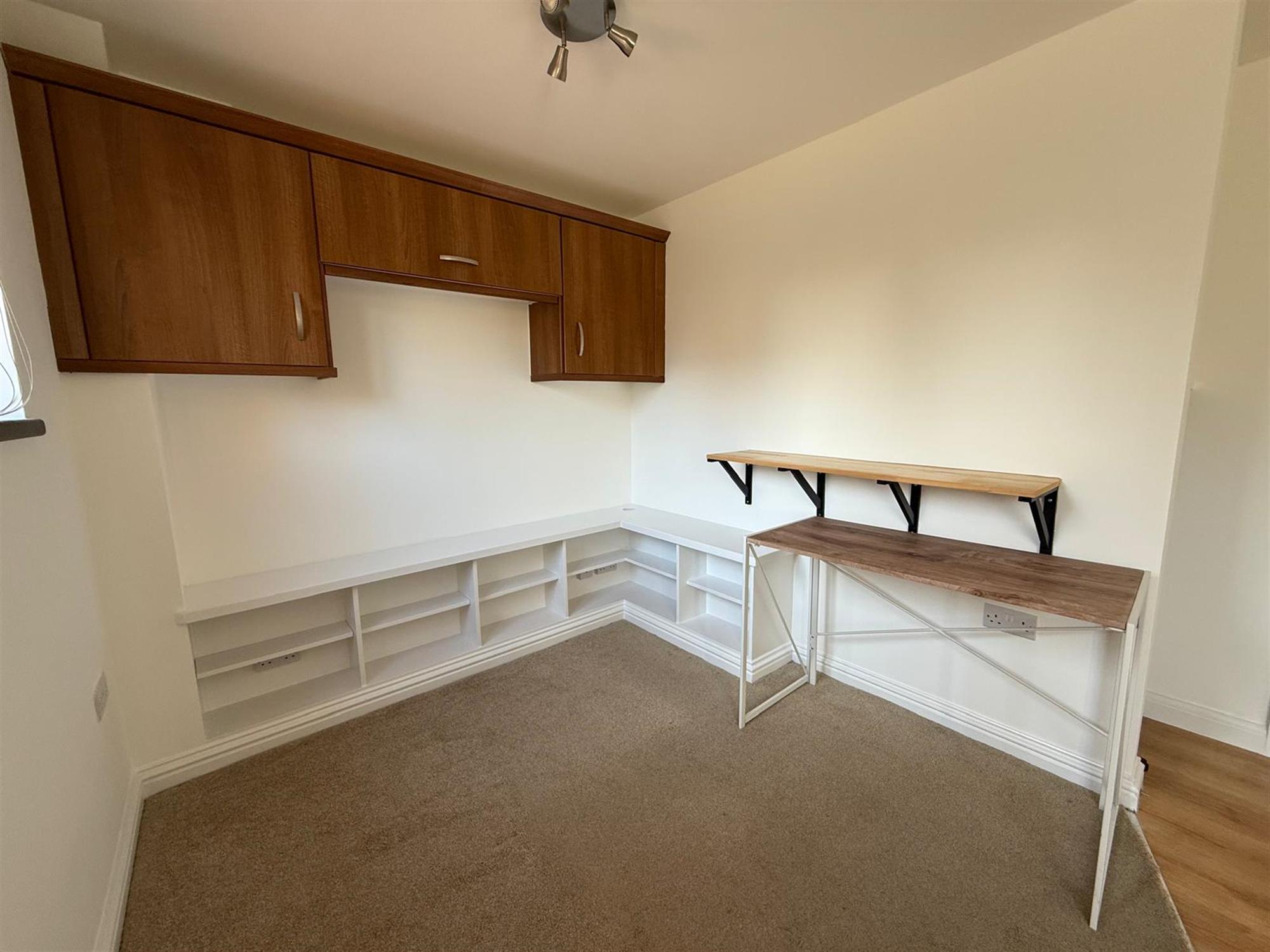LIVING AREA: Built in storage cupboards, shelving & table. Electric panel heater. Door to kitchen/ breakfast room. Stairs to first floor. Door & window to front aspect.