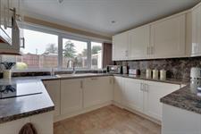 A range of wall and base cupboards with work surface over. Inset sink unit with drainer. Four ring halogen hob with extractor fan over. Integrated dishwasher, double oven, fridge and freezer. Double glazed window. Door to rear garden.
