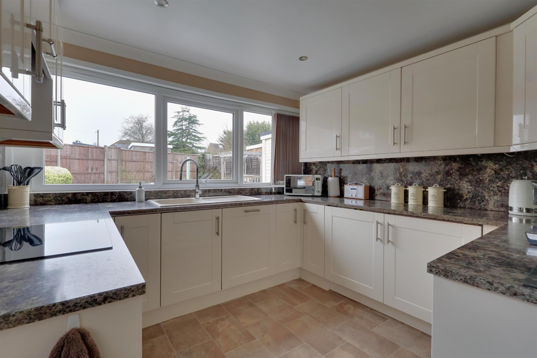 A beautifully presented, two bedroom semi-detached bungalow that enjoys a west facing rear garden. The property has been well-cared for which includes a new roof, which is approximately two years old. There is ample space to the front of the property, with a low maintenance patio with mature shrubs and a driveway providing parking for many vehicles, which leads to the detached garage with an electric roller door. The spacious entrance hall provides access to the sitting room with an attractive square bay window. There is a dining room which is situated next to the modern fitted kitchen, overlooking the garden.