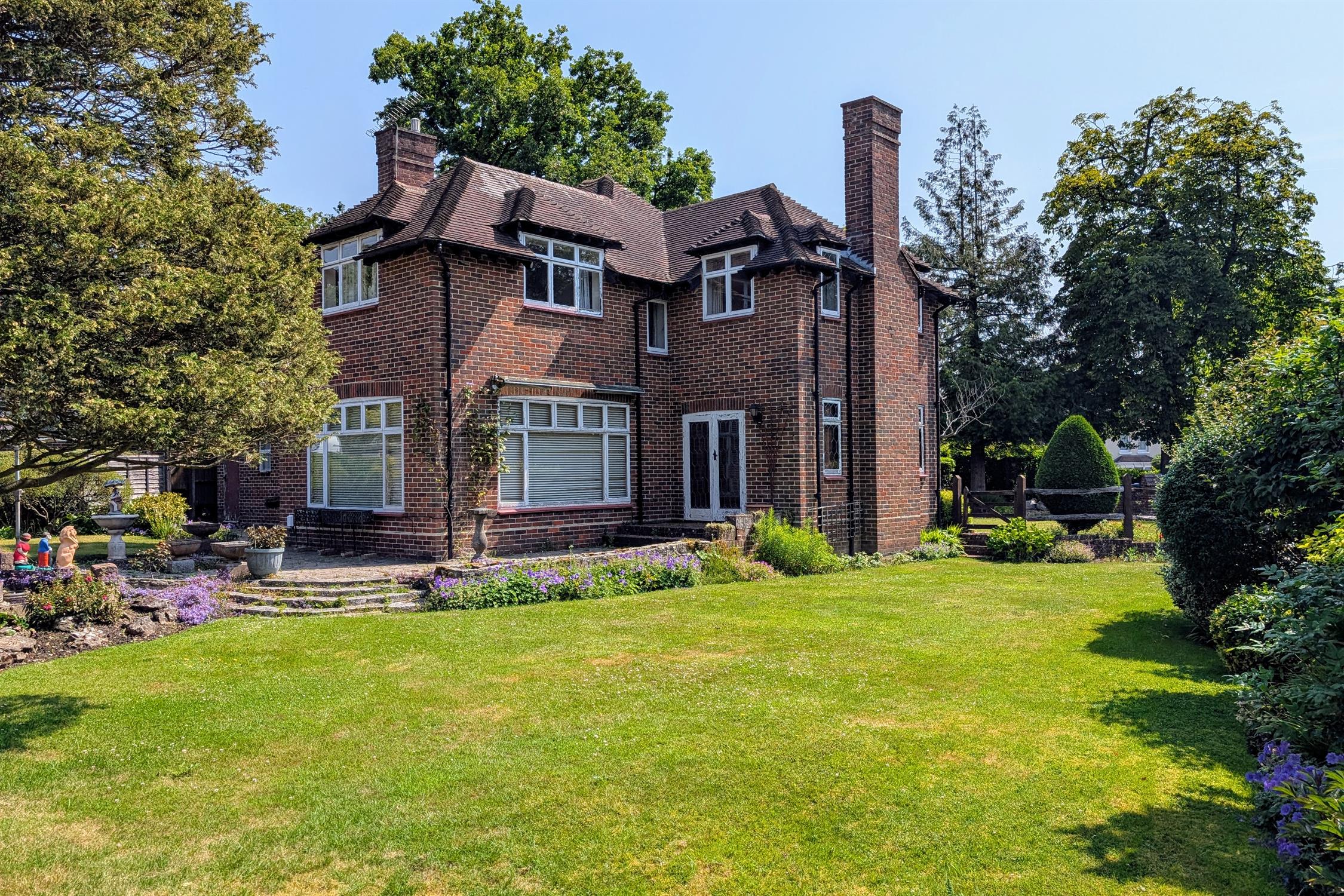 The substantial rear garden is a particular feature of the property and can be found mainly laid to lawn. There are numerous water features and well-stocked flower and shrub borders. There is a greenhouse and timber summerhouse and the garden has a wooded backdrop.