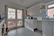 Double glazed window to the side elevation and double glazed French doors leading into the conservatory. Fitted with a range of wall and base units with rolled-edge work surfaces over, stainless steel sink with mixer tap, ceramic hob with extractor over and oven under. Space for fridge freezer and washing machine. Part tiled walls and wall-mounted boiler.