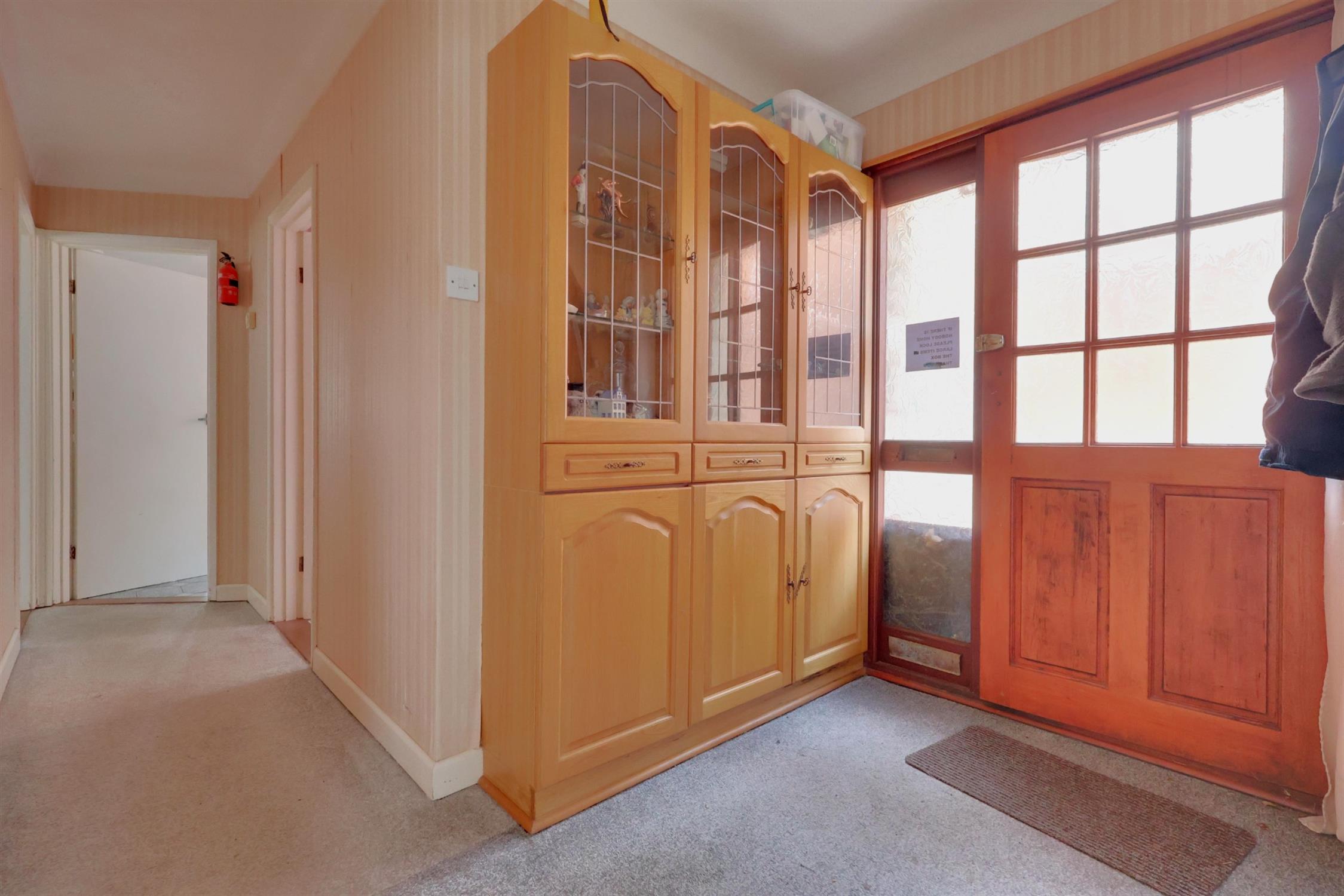 A bright and spacious dual-aspect room with two double glazed windows to the side elevation and a double glazed window to the rear overlooking the conservatory. Radiator and wooden staircase rising to the first floor.