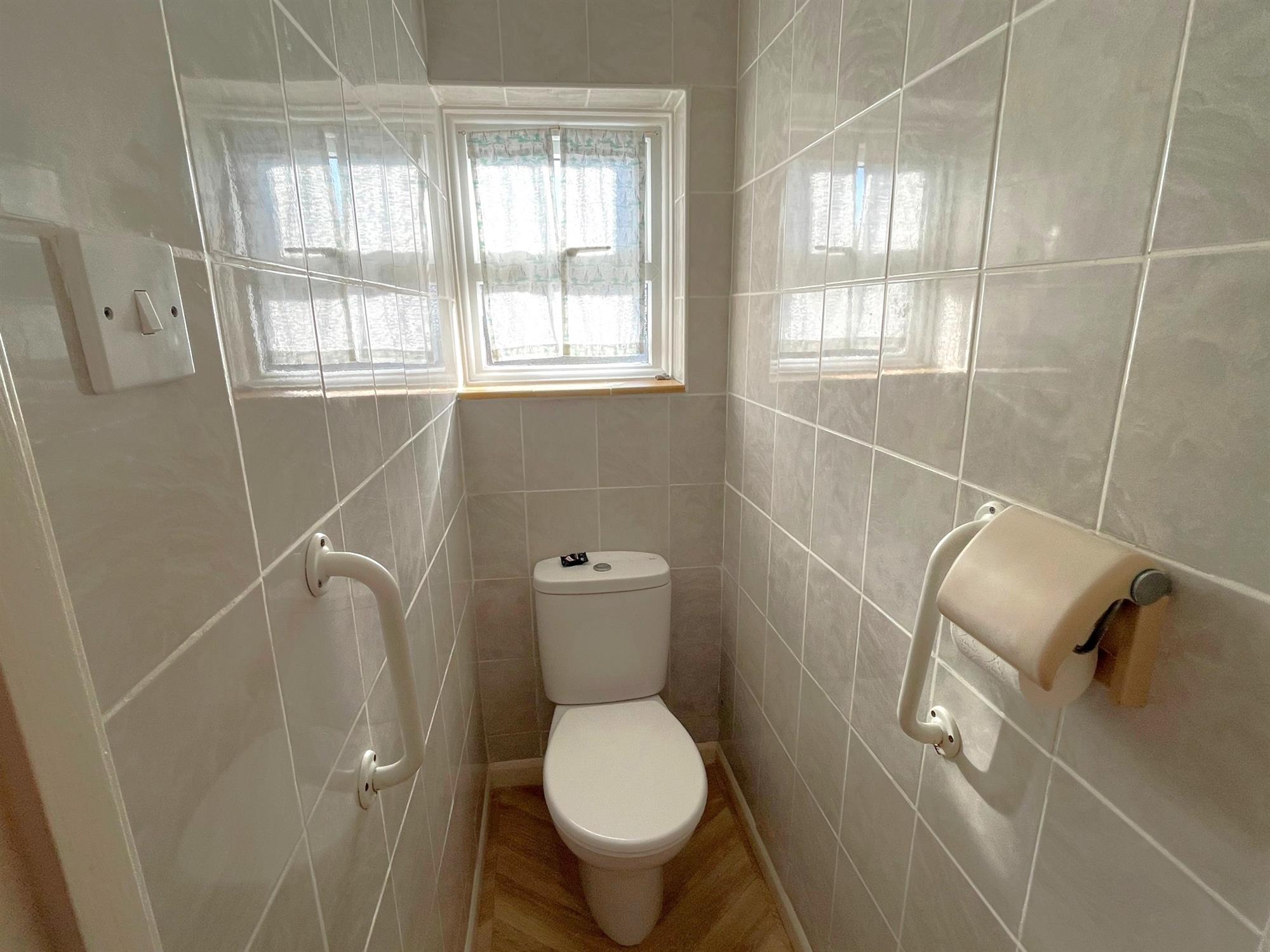 Separate to shower room. Window to side. Low level WC. Fully tiled.